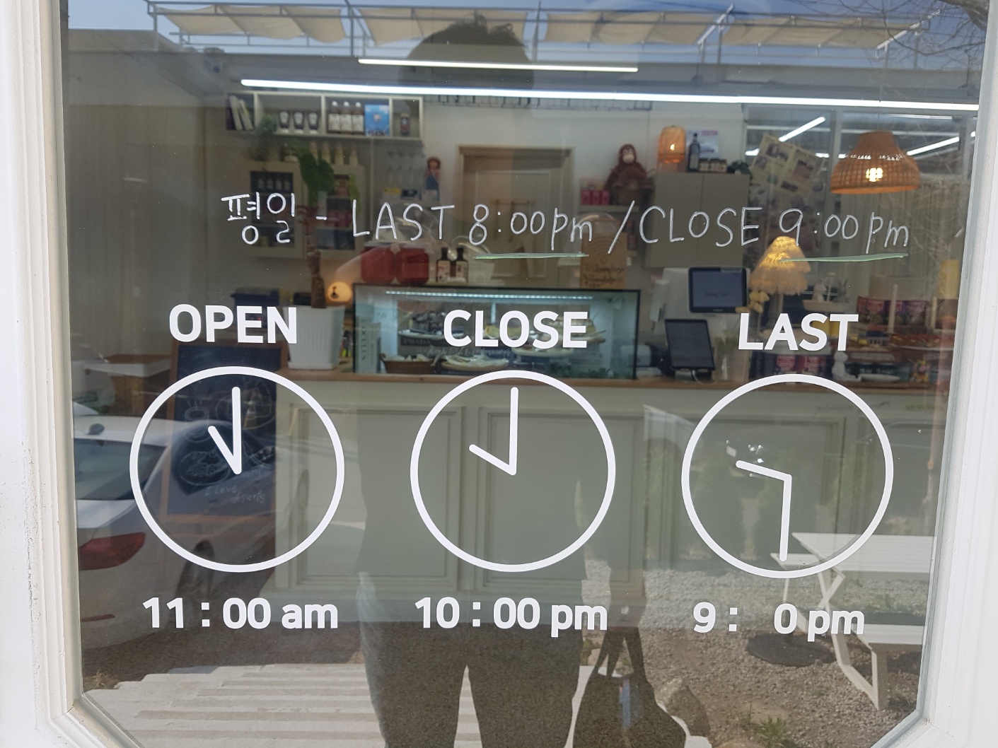 카페 앞쪽에 운영시간과 마지막 오더시간을
