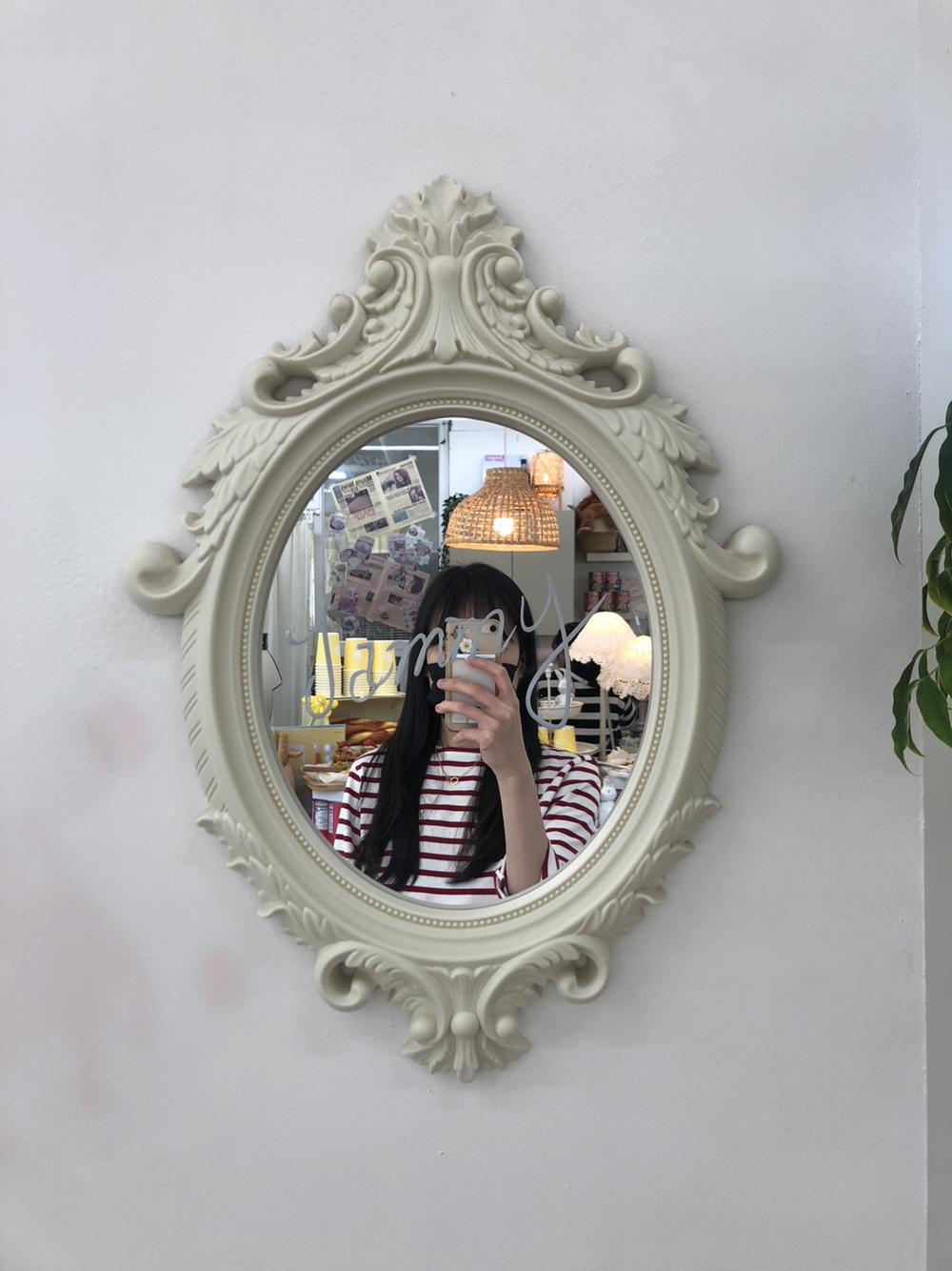 감성가득한 째미핑거 카페의 거울이 있더라고요.