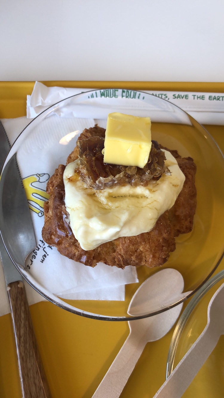 스콘에 벌꿀이 통째로 올려져 있고