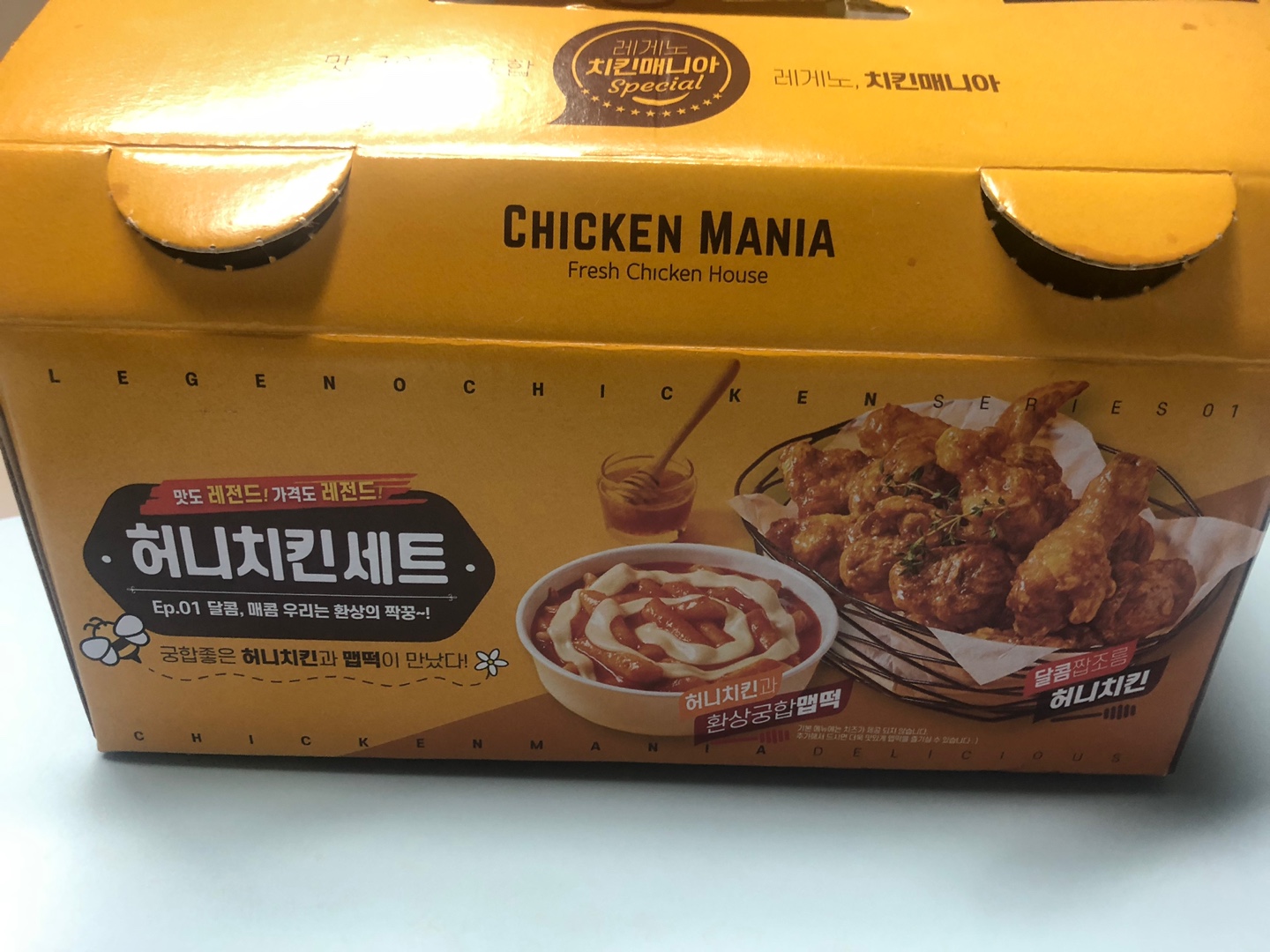 어제 야식으로 치킨매니아를 배달시켜먹었어요.