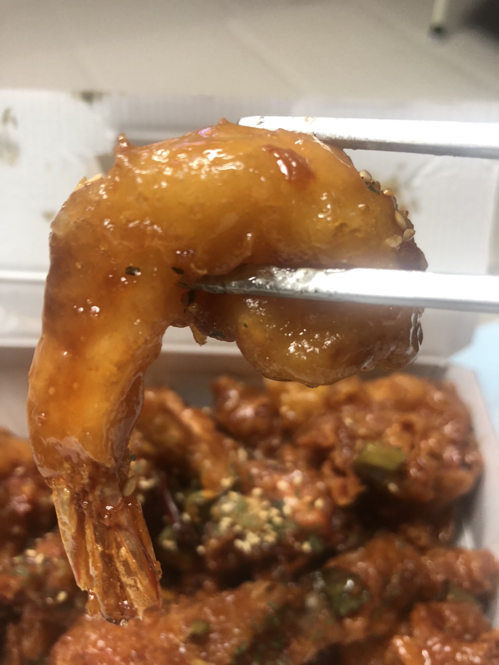 왕새우치킨에 들어있는 새우튀김이에요.
