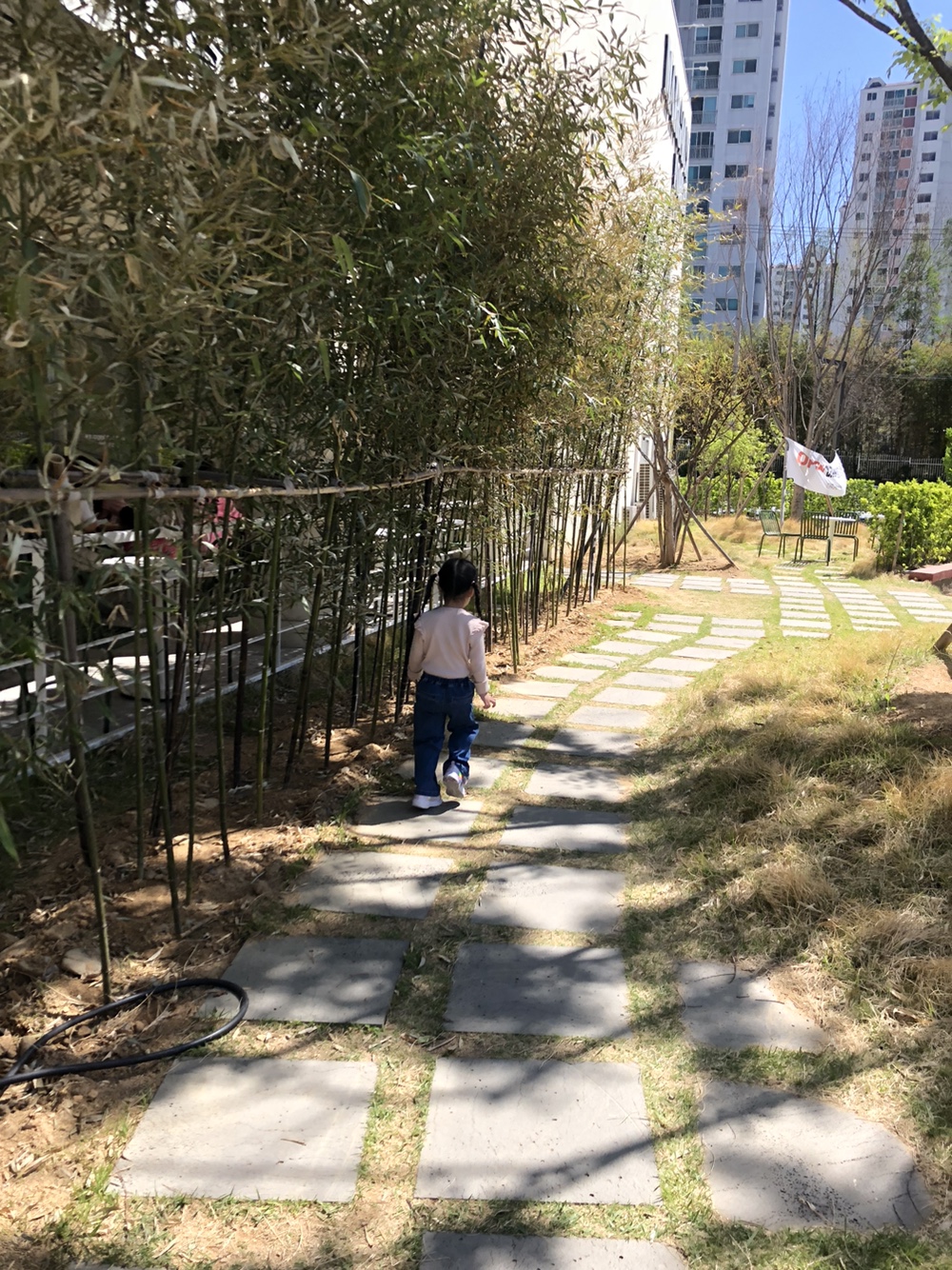 주차장과 연결된 카페로 가는 길이에요.