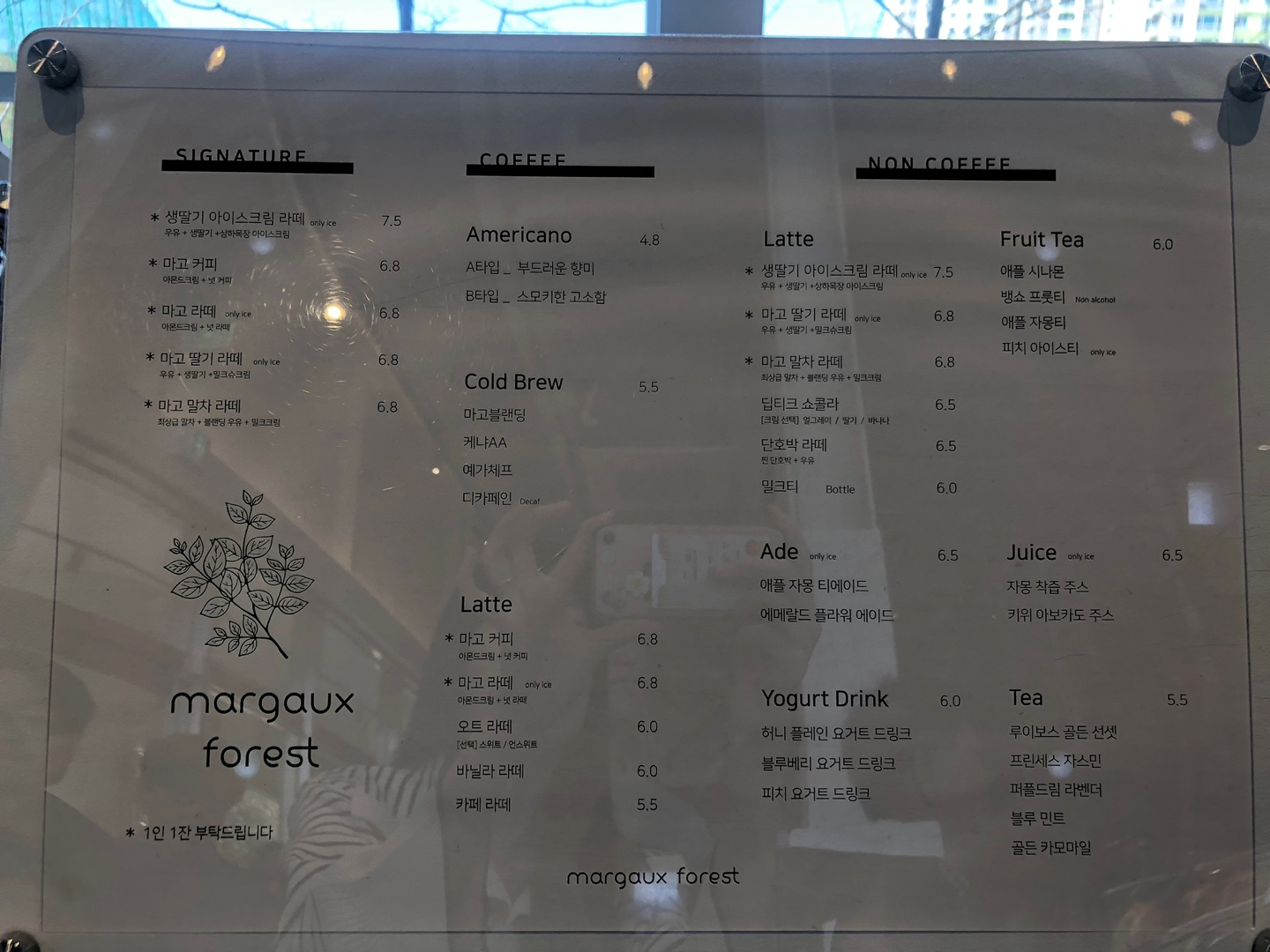 경산 마고포레스트 카페의 메뉴판이에요.