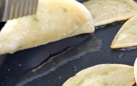 그리고 납작만두는 기름에 살짝 구우신다음에