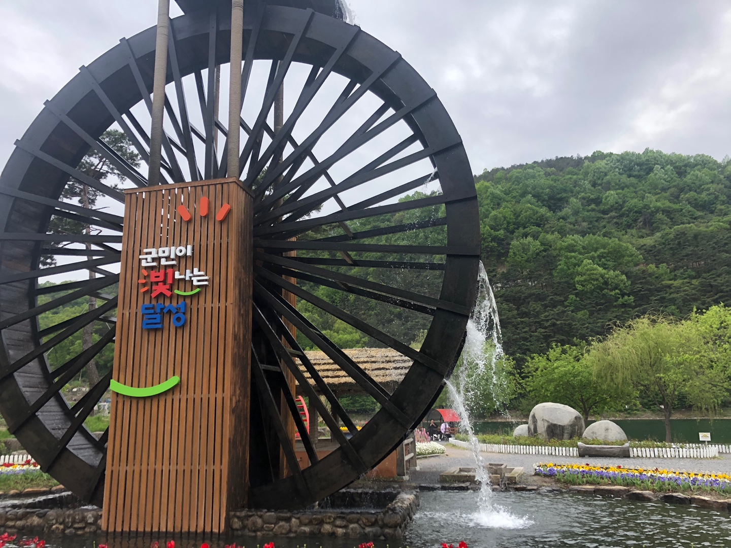 옥연지 송해공원에는 이렇게 커다란 물레방아가 있어요.