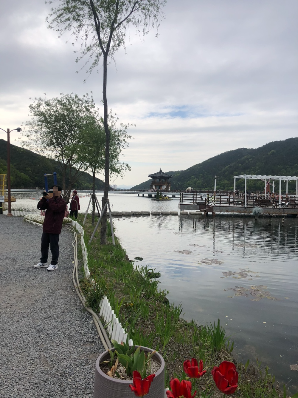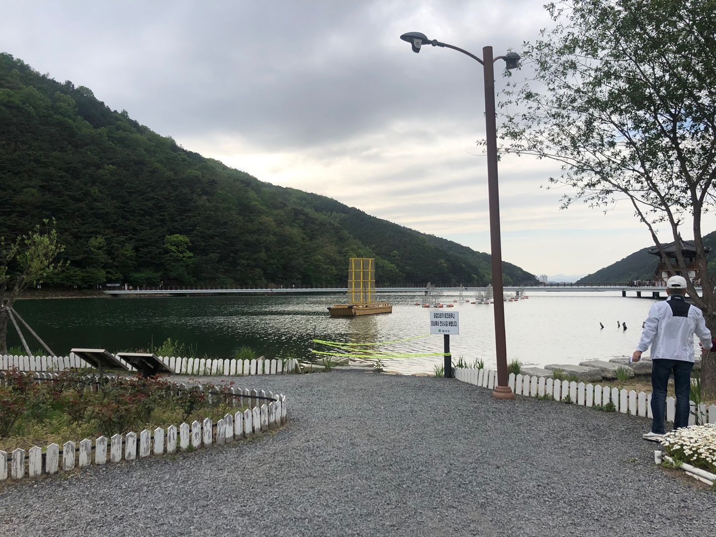 호수와 산을 바라보며 산책하니 너무 기분이 좋았어요.