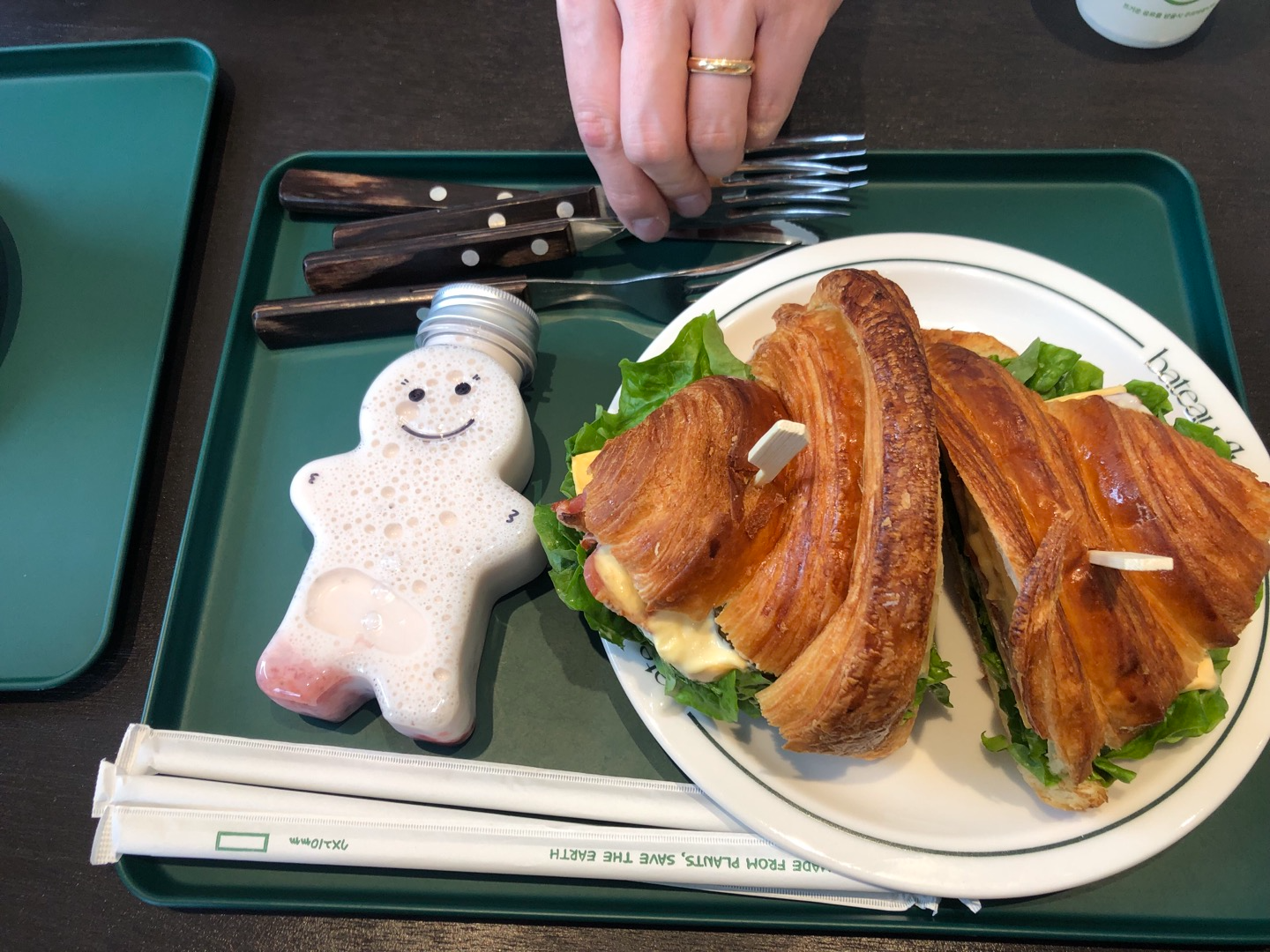 그리고 아이가 먹을 딸기우유, 크로아상 BLT샌드위치 이렇게 주문했어요.