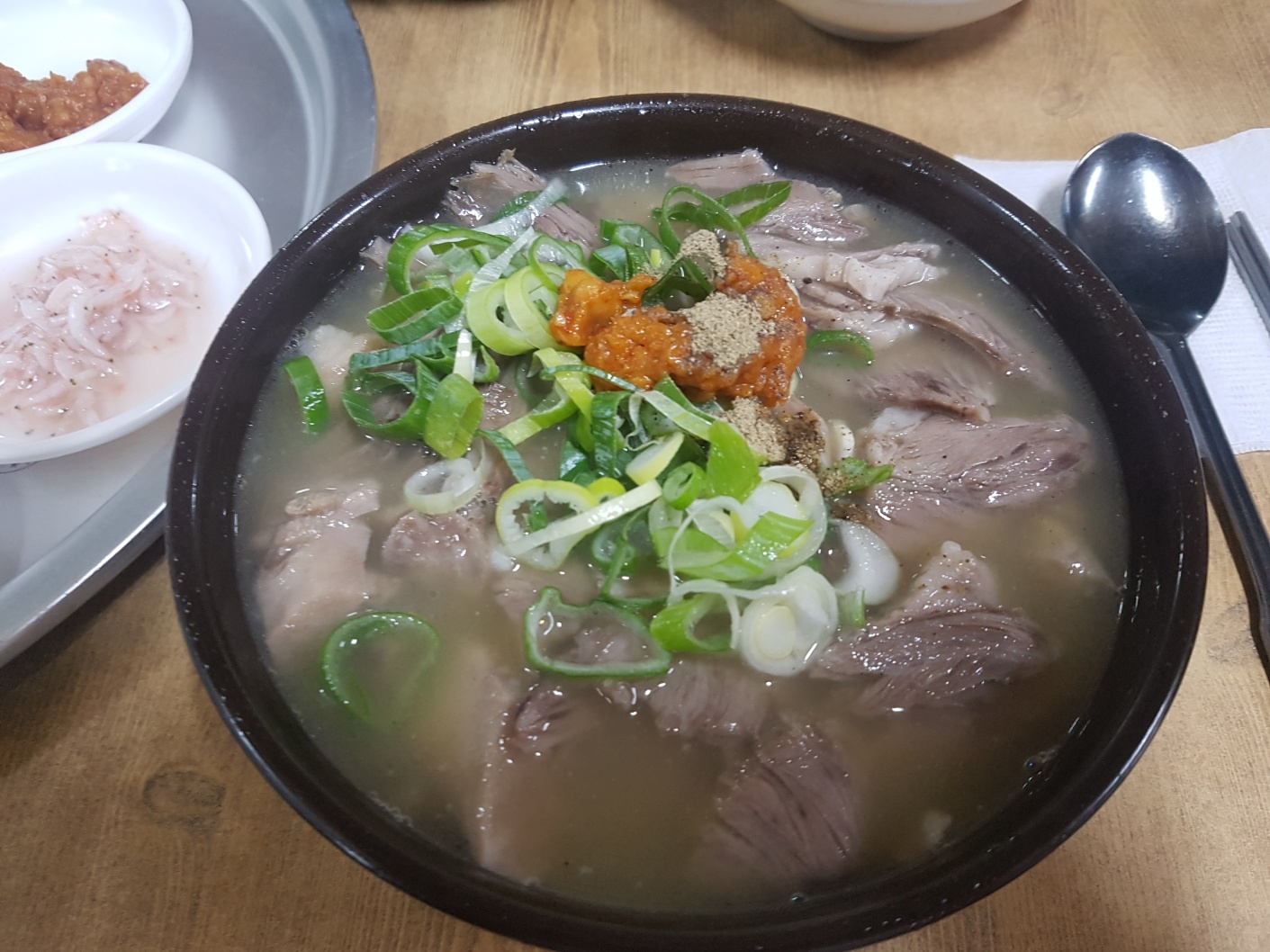 여긴 국물색깔이 뽀얀 사골색깔이 아닌
