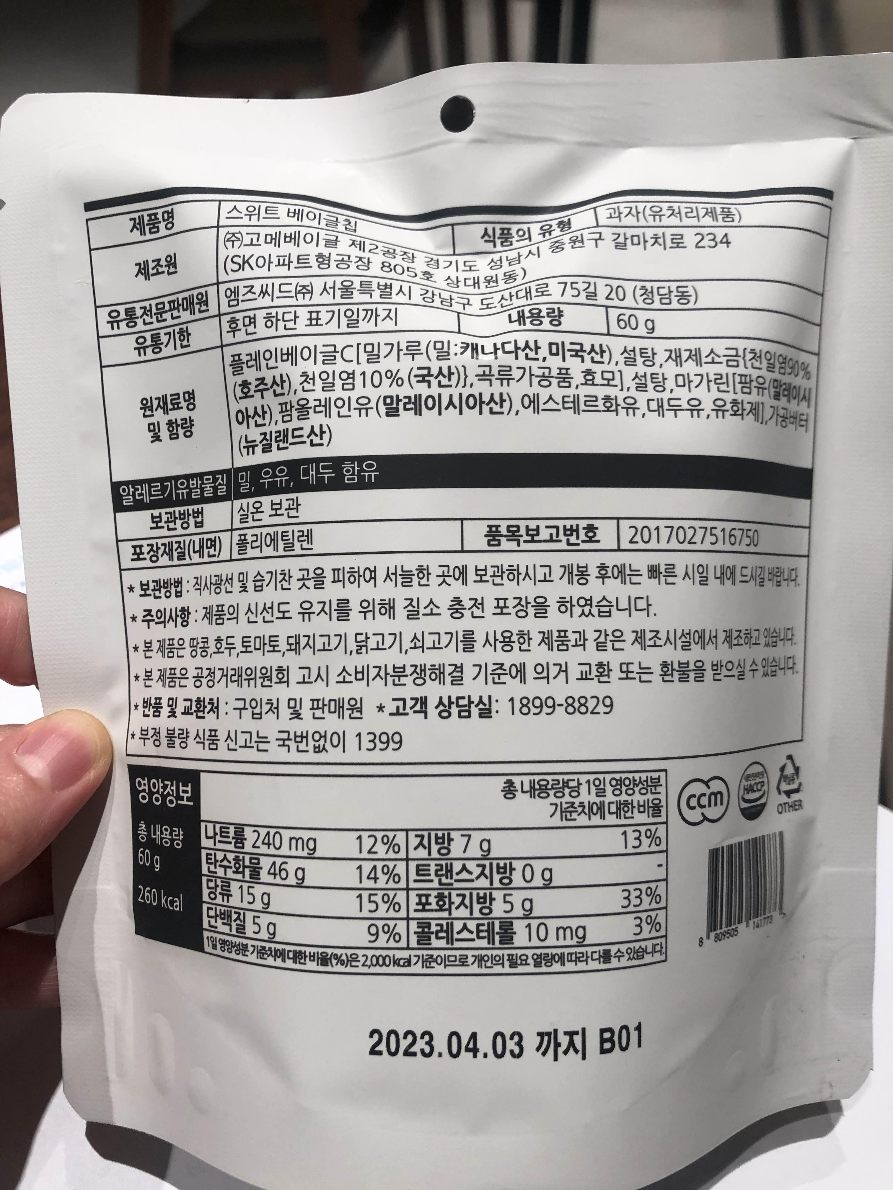 요건 이름그대로 짭쪼롬한 맛 보다는 달달한 맛의 베이글칩인데 먹어면먹을수록 맛있구 식감도 적당히 바삭하면서 두께도 두껍지 않아 먹기 좋더라구요! ㅎㅎ