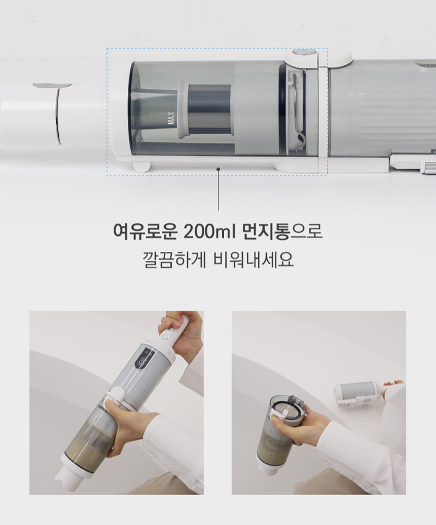 먼지통을 분리하여 물세척할 수 있어요.