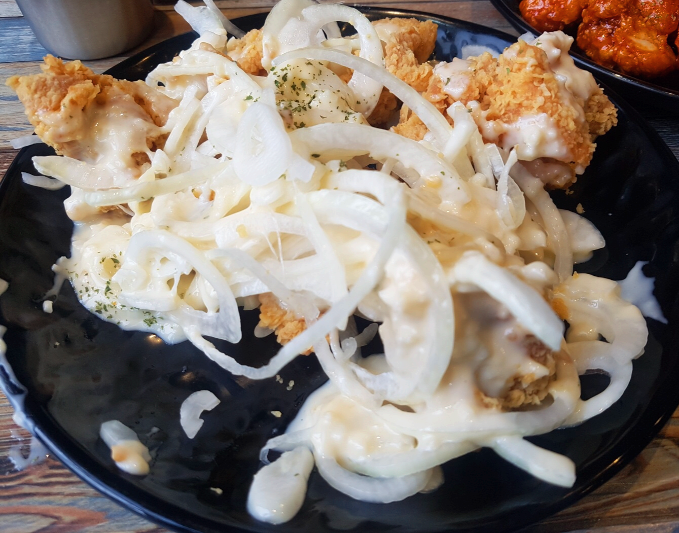 달콤한 크림소스에 양파를 곁들여 먹으니깐