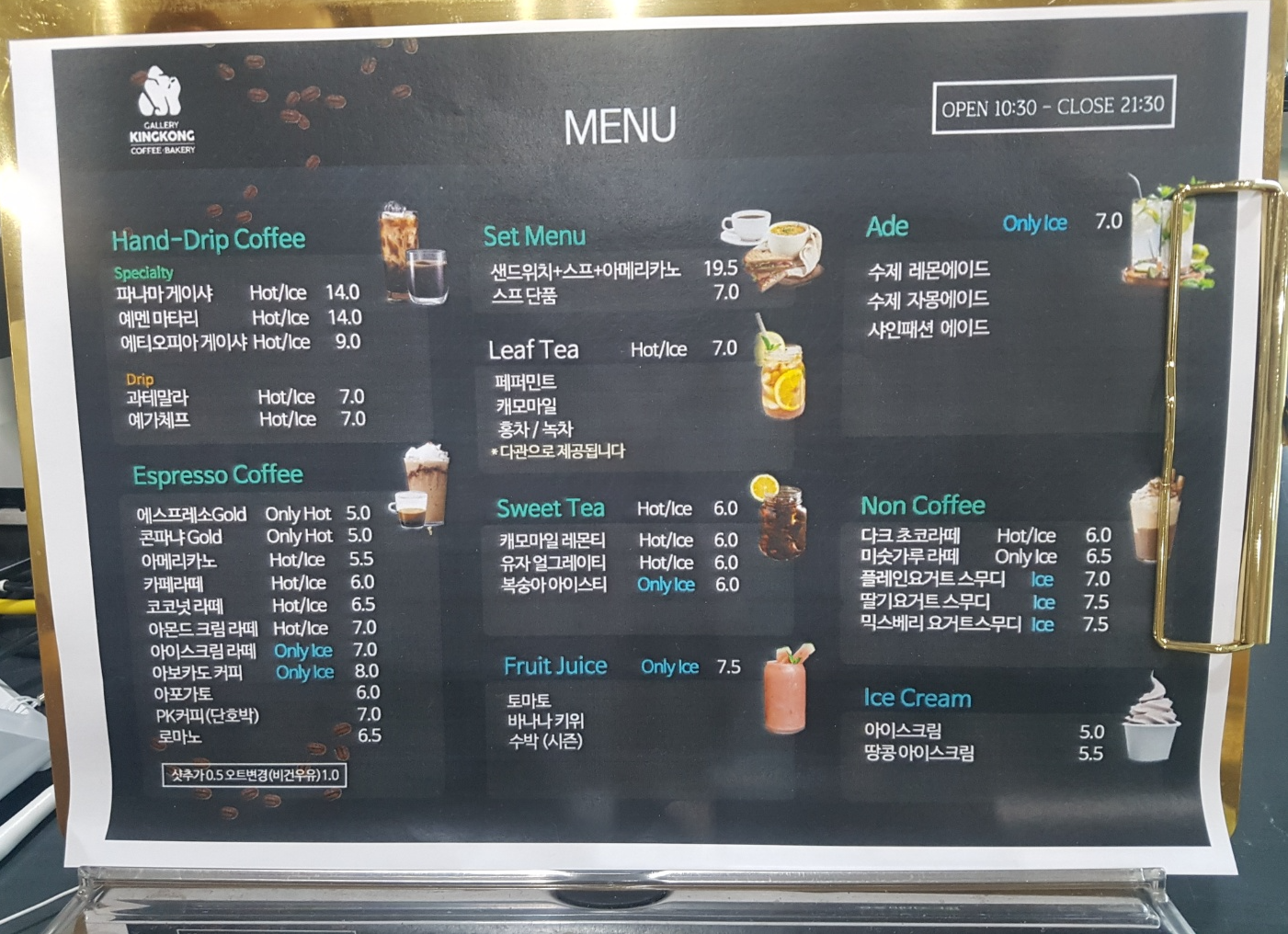 대구 달서구 킹콩 갤러리카페의 메뉴판이에요.