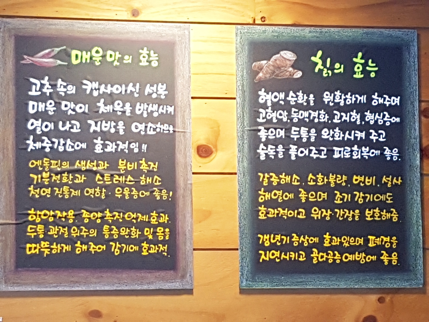 매운맛과 칡을 효능이 적혀져 있더라고요.