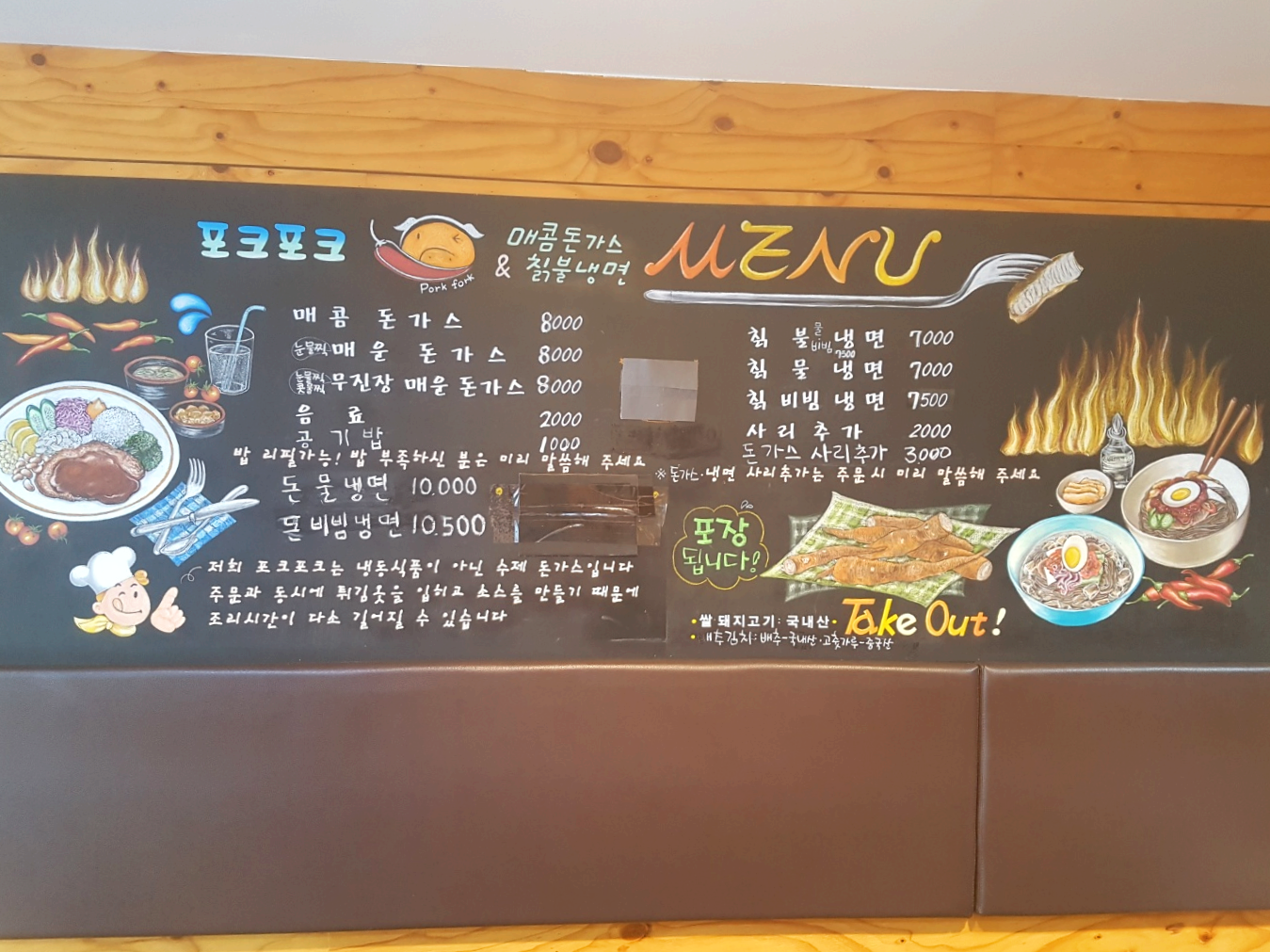 대구 매콤돈까스&칡불냉면의 메뉴판이에요.