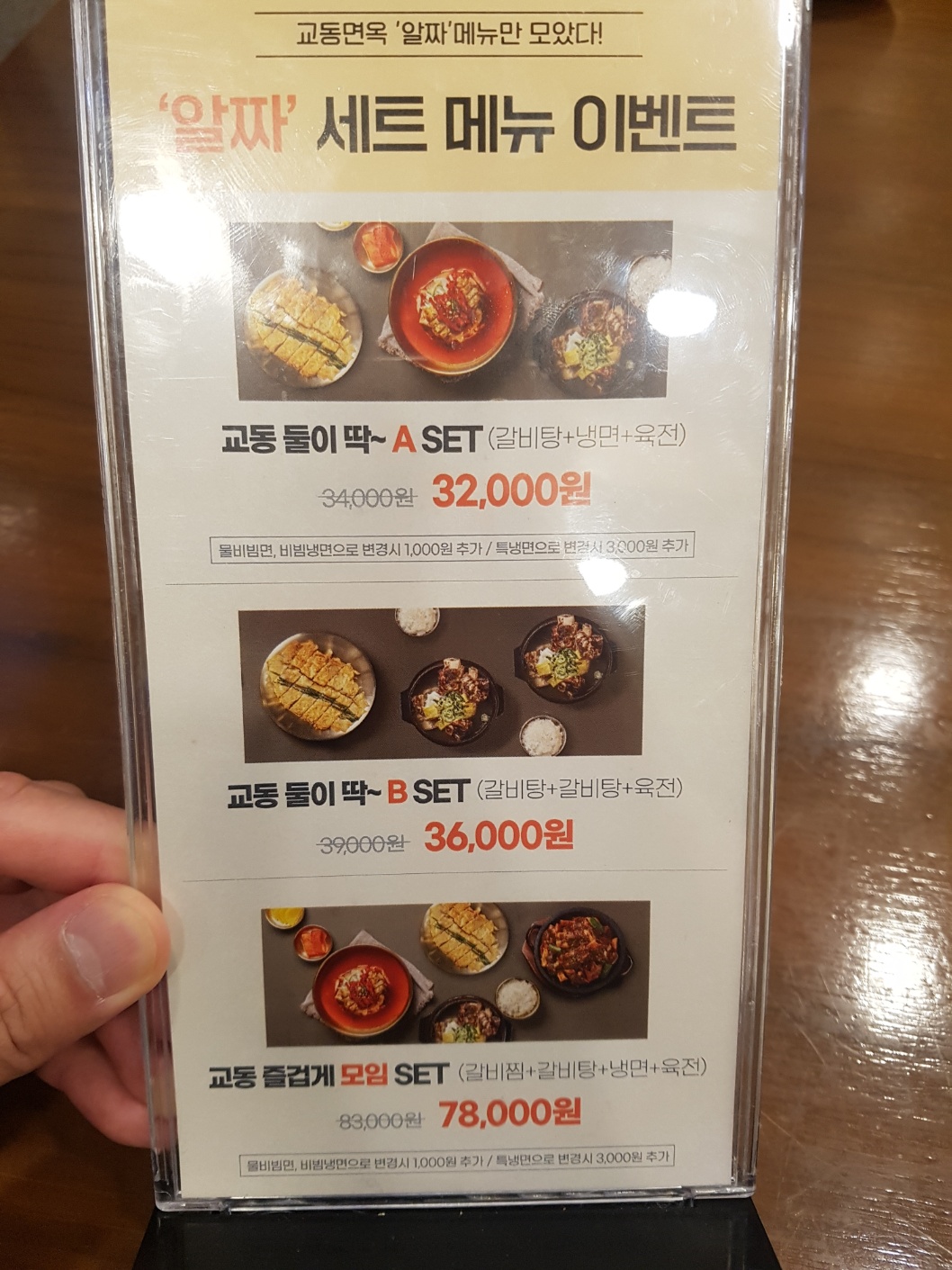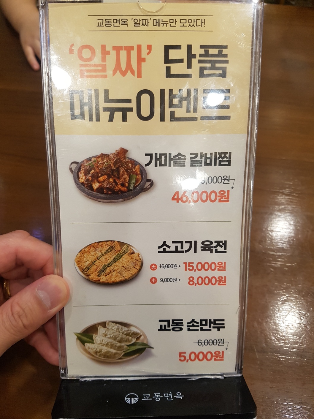 교동면옥의 알짜 메뉴만을 모아 단품메뉴를 할인하고 있었어요.