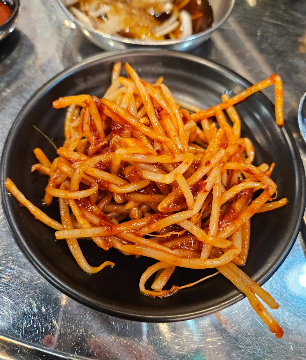 상구네돼지구이 매콤한 콩나물 무침이에요.