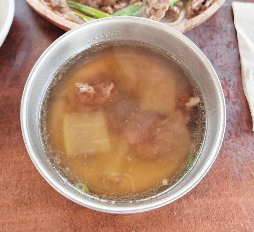 기본찬으로 나오는 소고기뭇국이에요.