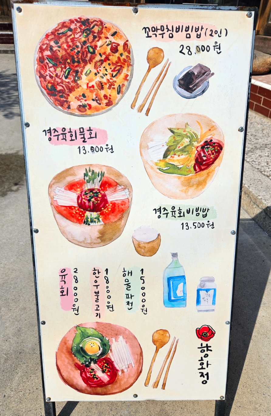 경주 황리단길 맛집 향화정의 메뉴에요.