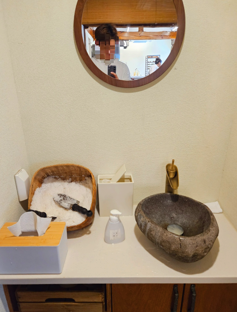 손씻는곳과 식기, 티슈, 물 마시는 곳이에요.