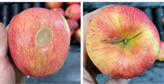 검은반점, 찍힘 등이 있는 사과랍니다.