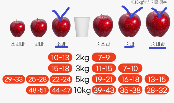 중대과는 400g내외로 큰사이즈의 사과로