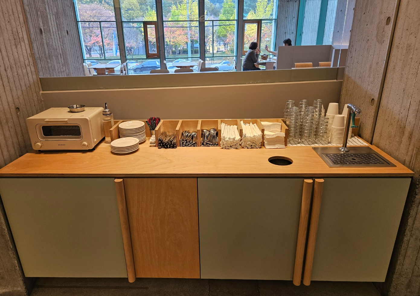 카운터 바로 뒤에 있는 셀프바에서