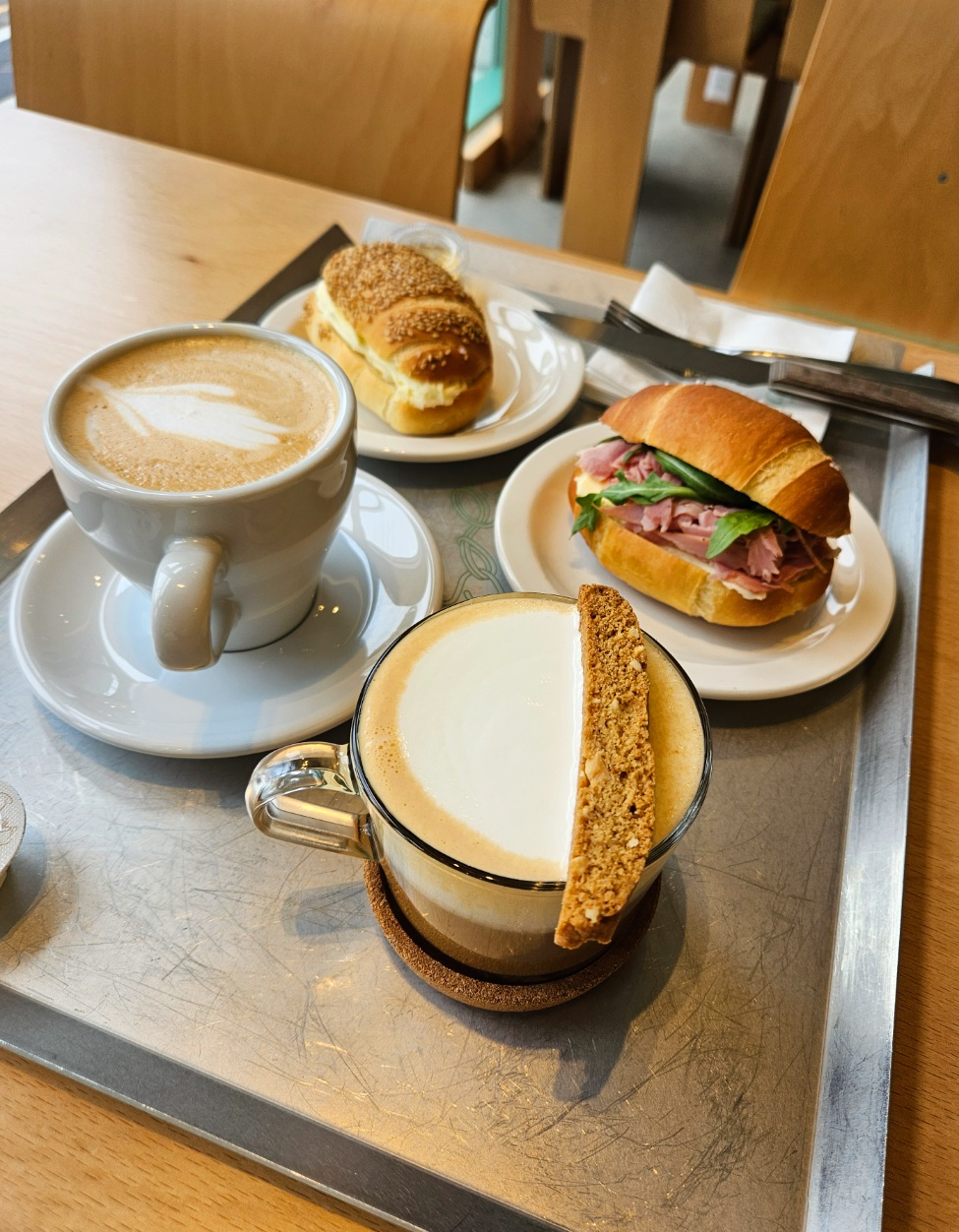먼저 주문한 커피와 빵들이 나왔어요.