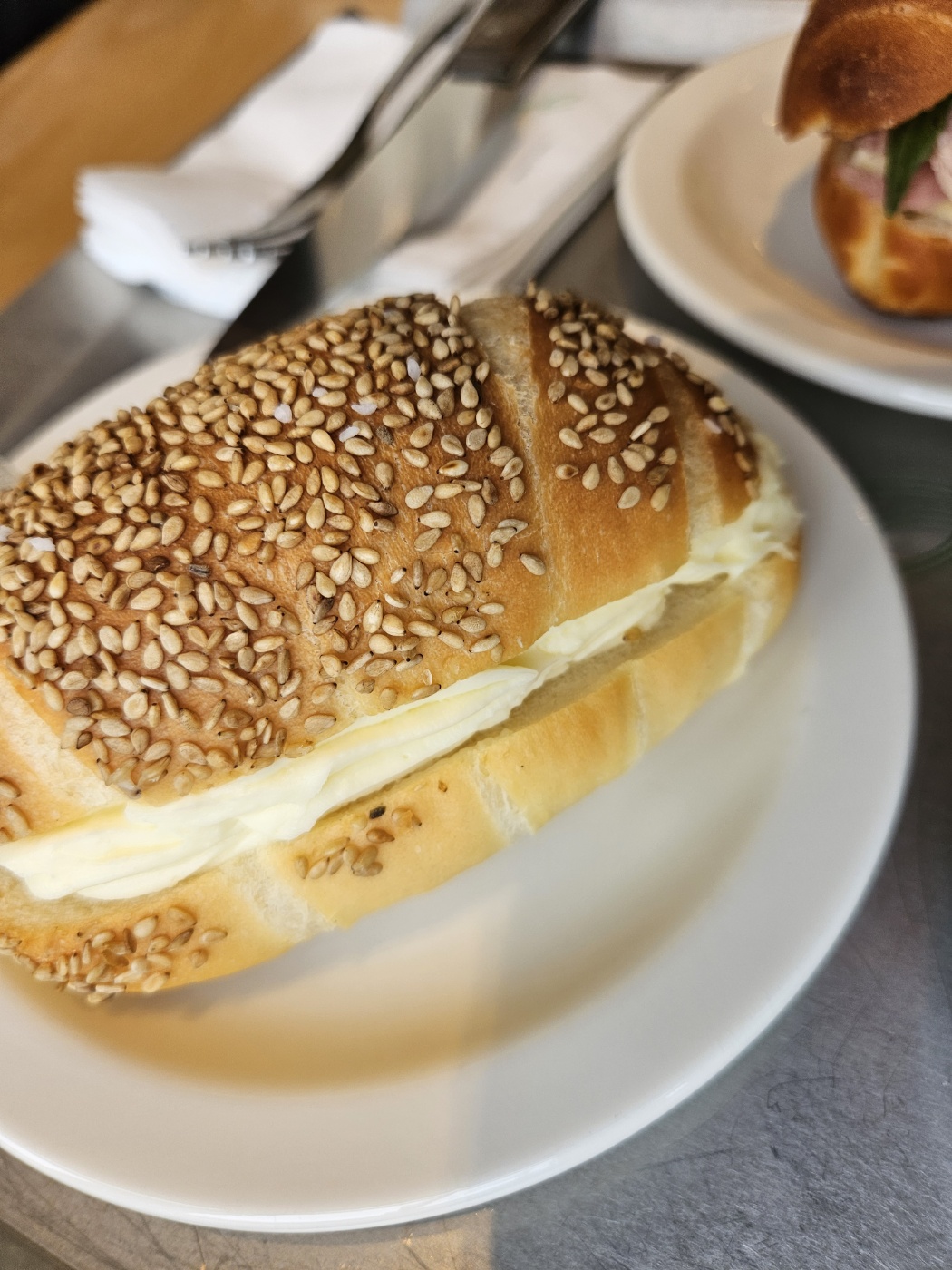 고소한 참깨가 얹혀진 소금빵이