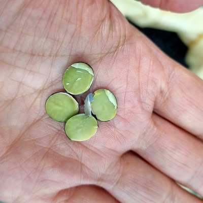 겉 껍질은 검정색이지만 속은 초록색 또는