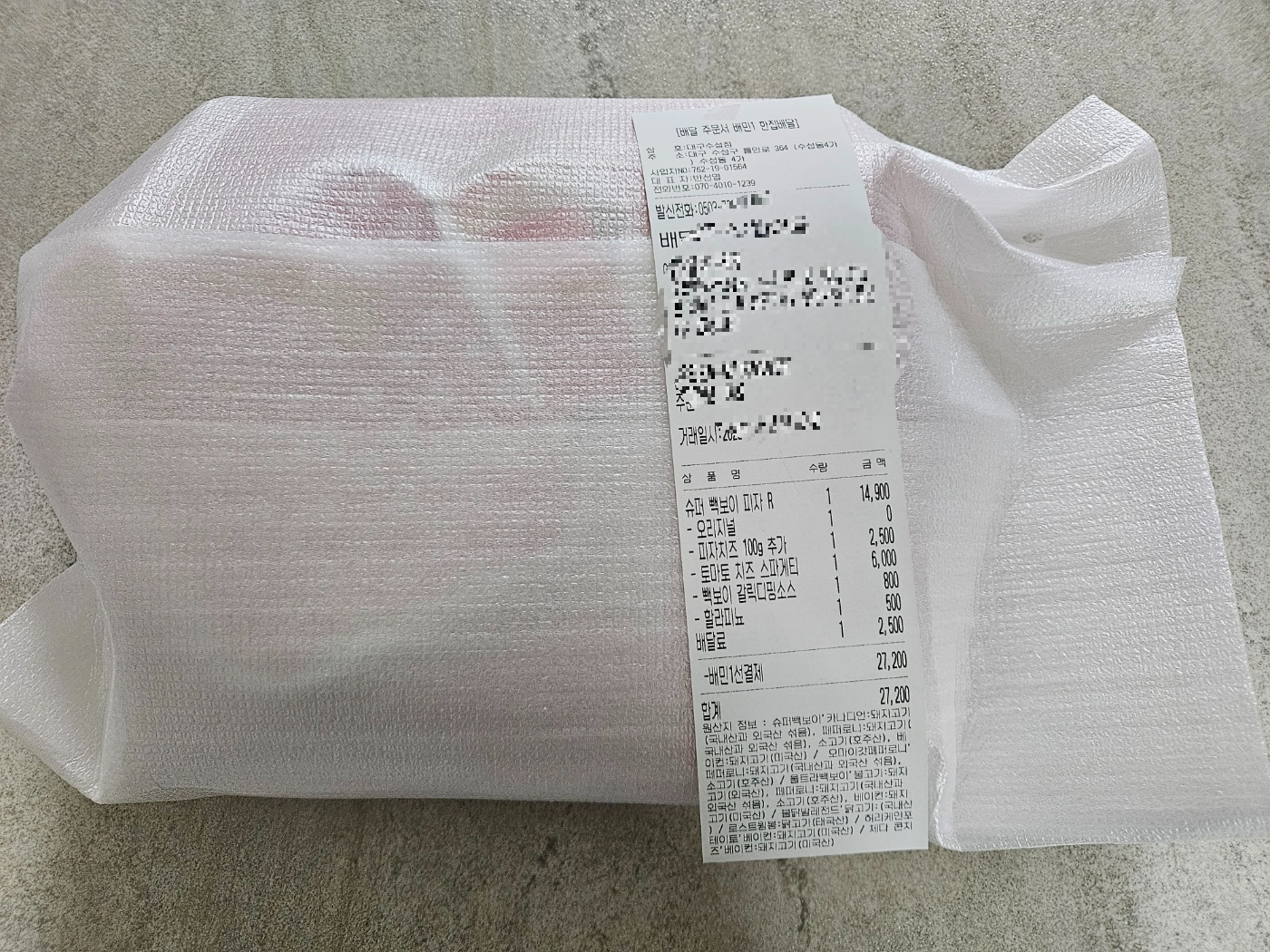 꽁꽁포장되어온 빽보이피자랍니다.