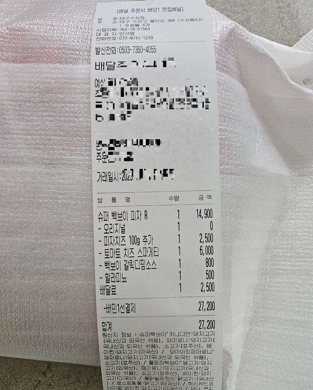 제가 주문한 지점은 빽보이피자 수성점이에요.