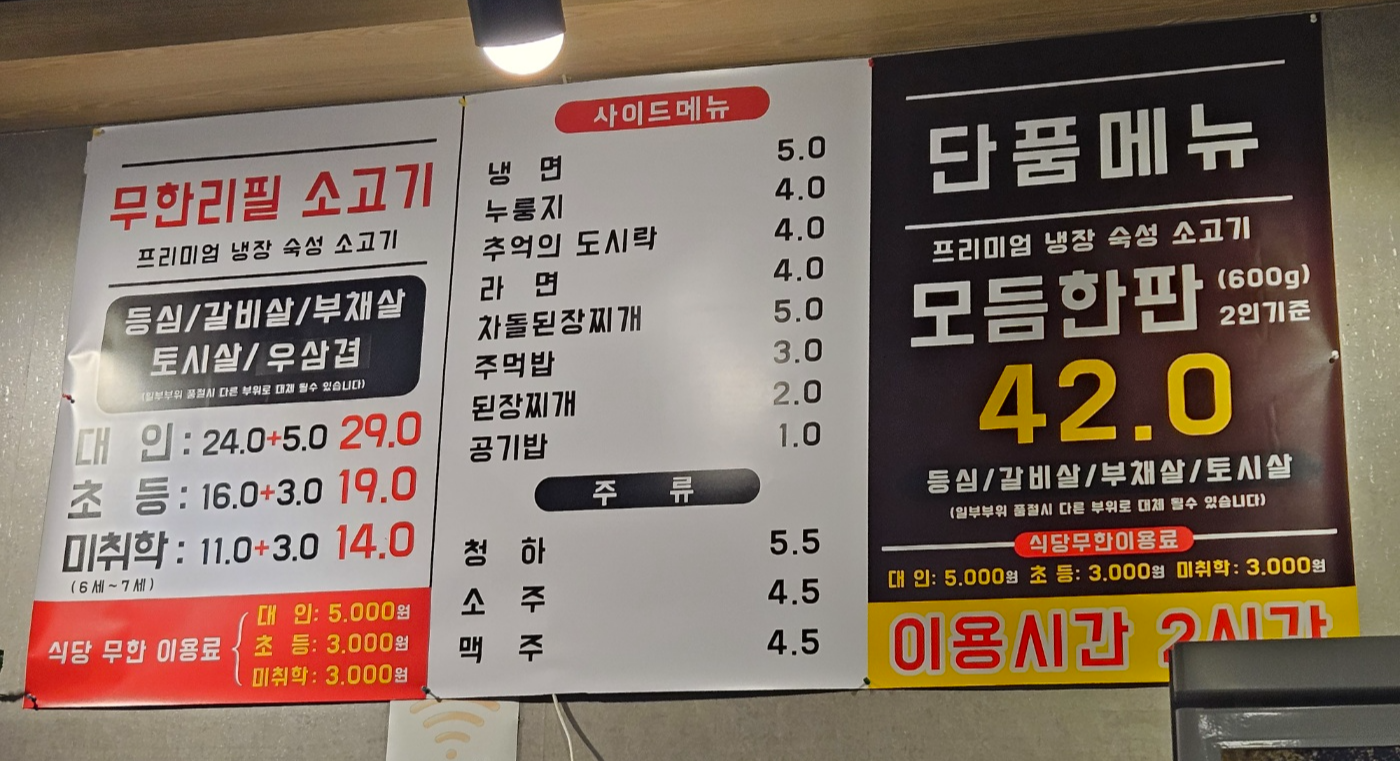 소고기 무한리필과 샐러드바를 이용할 수 있는