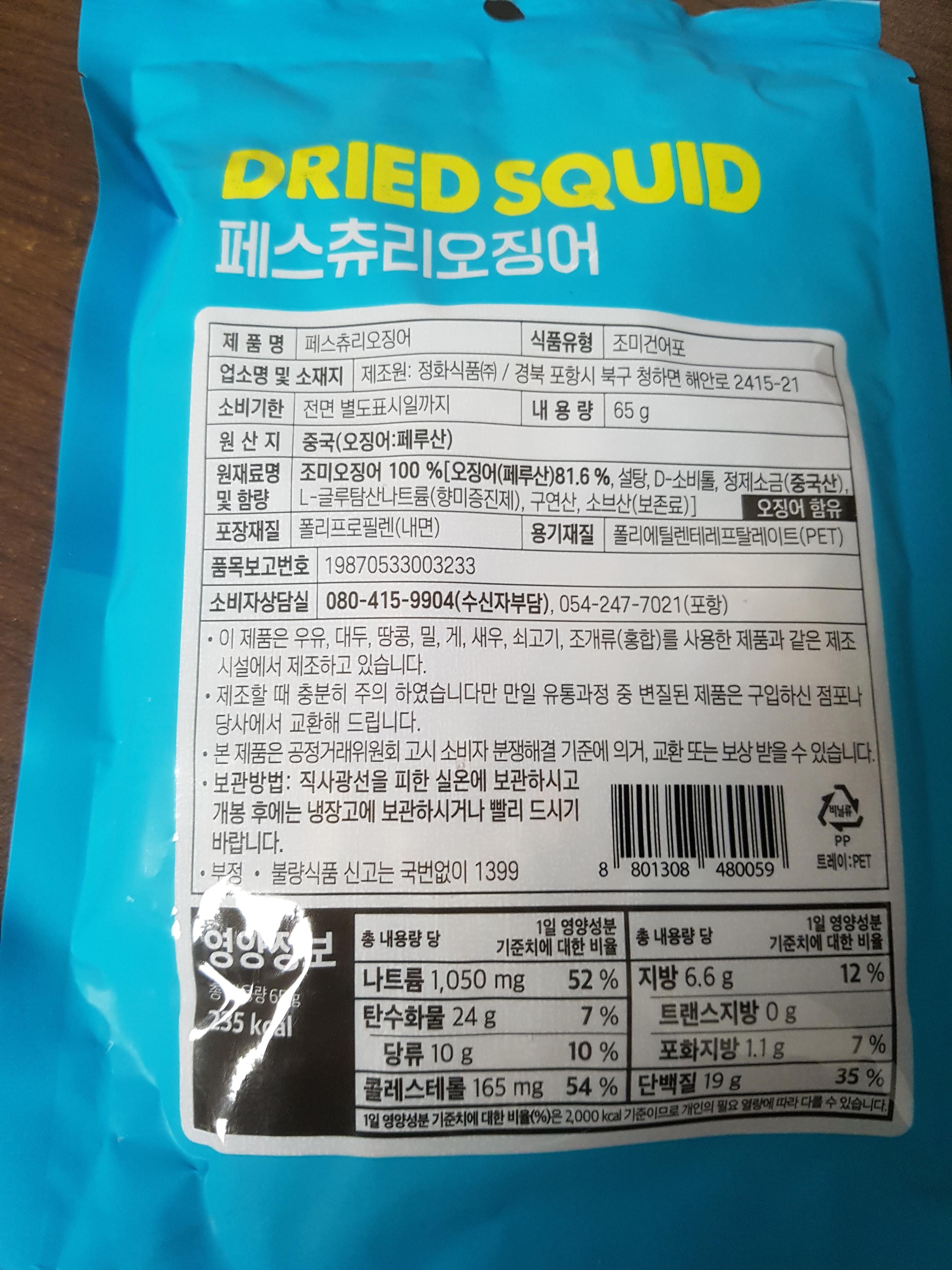 그냥 건오징어칼로리랑 비슷한 것 같아요.