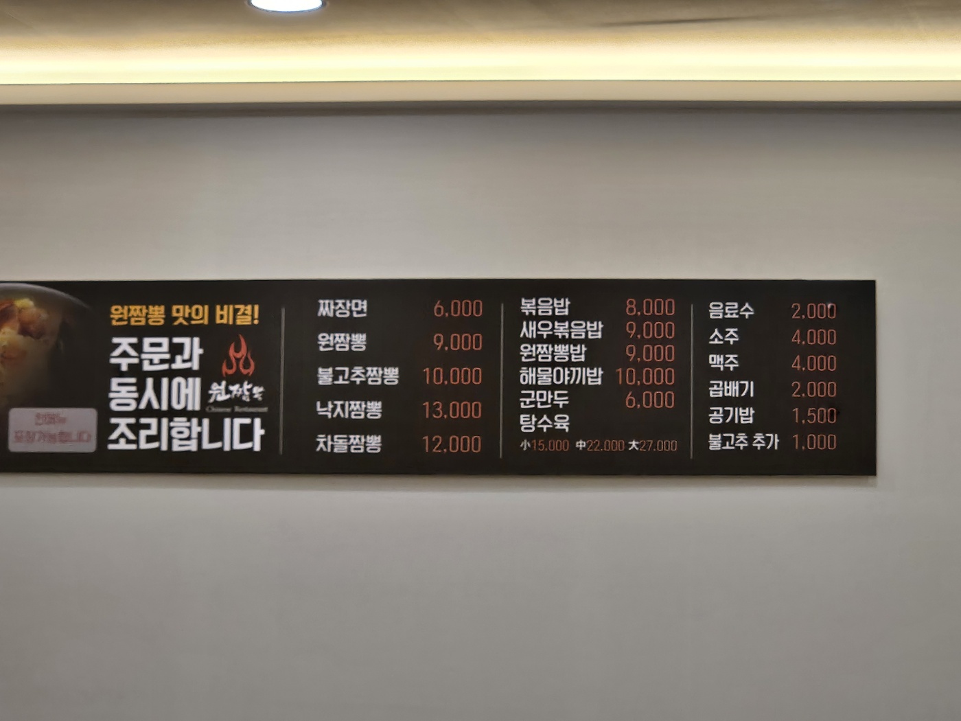 그런데, 원짬뽕은 쾌적하고 깔끔한데다가