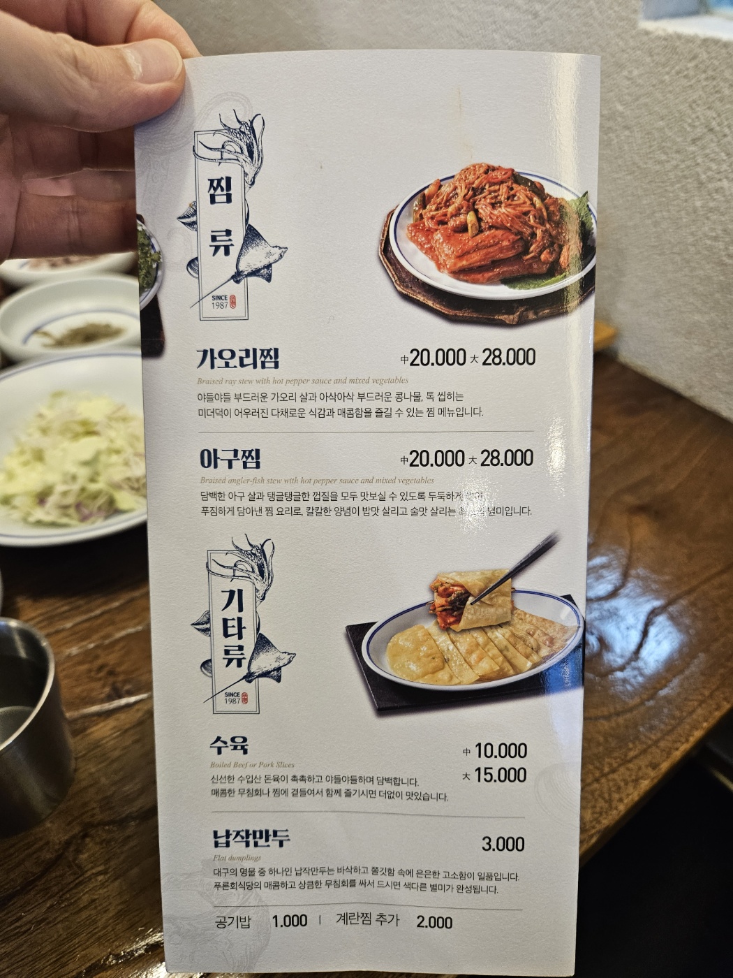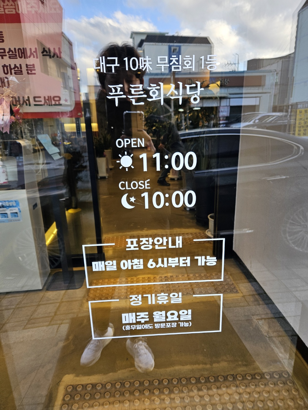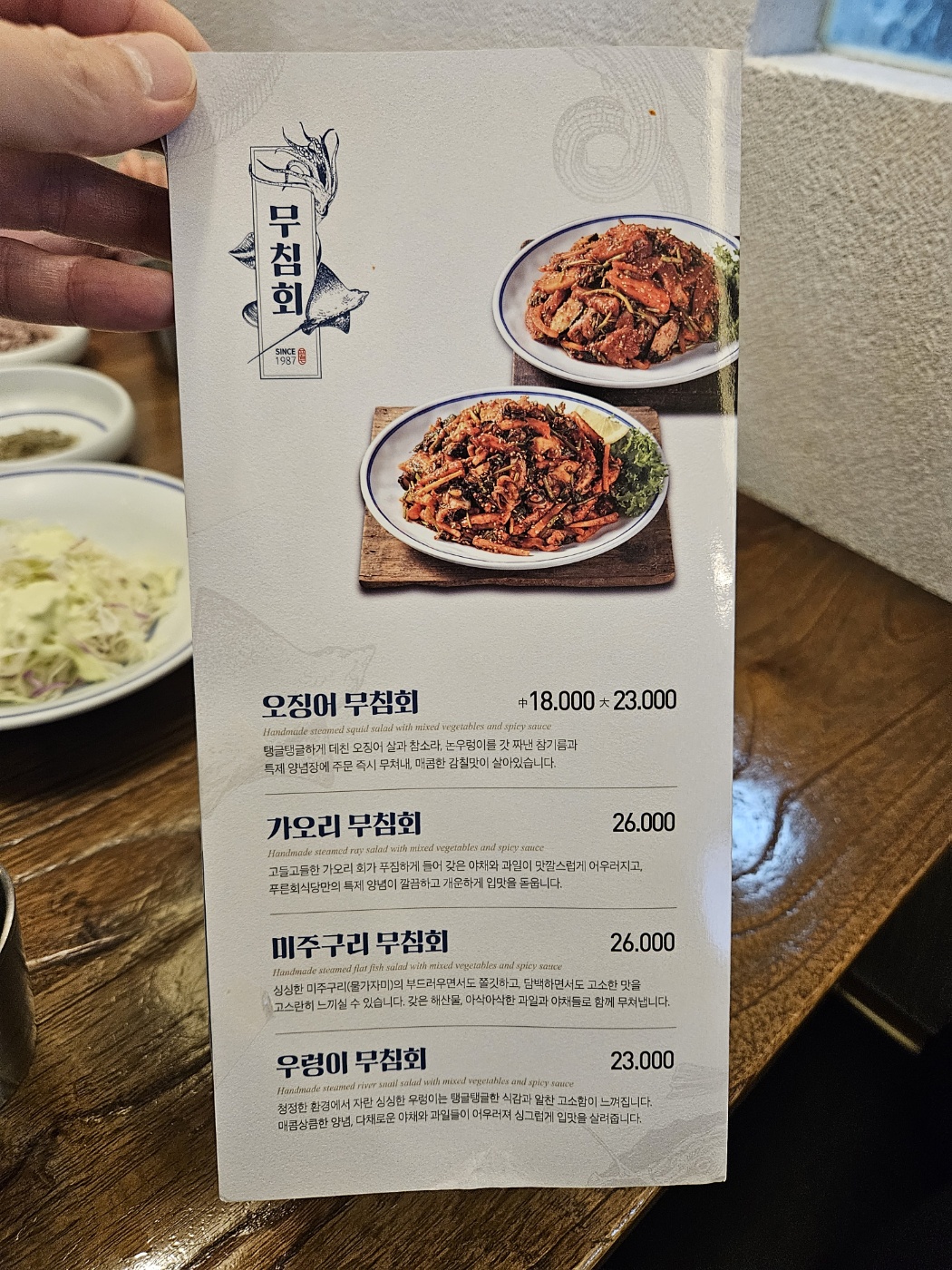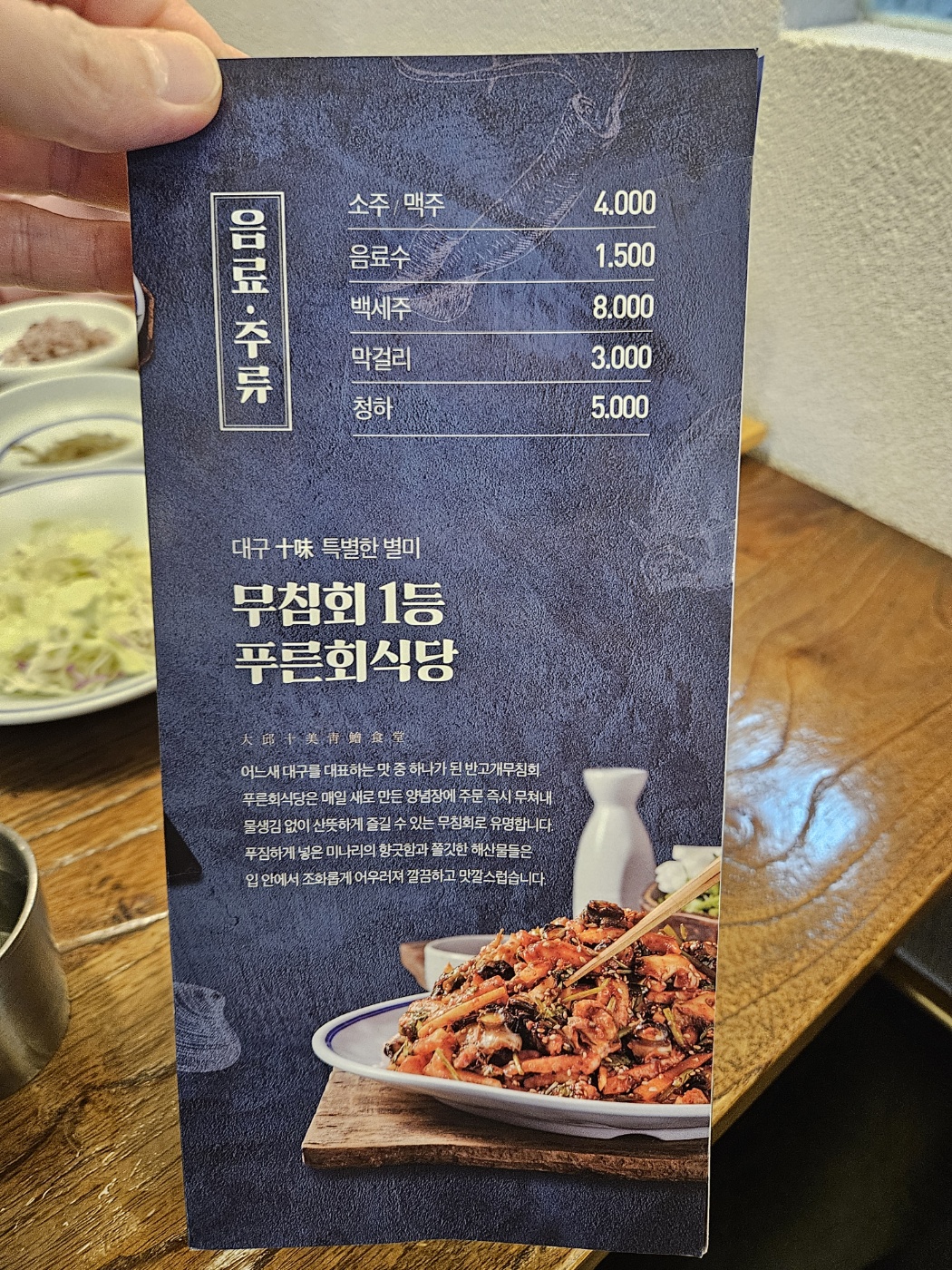 대구 반고개 무침회맛집 푸른회식당 메뉴에요.