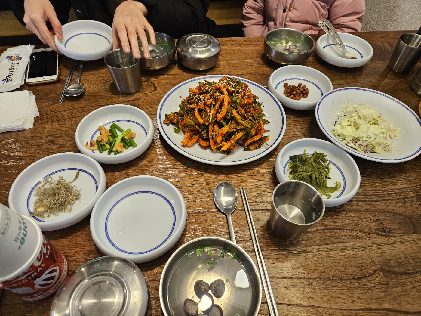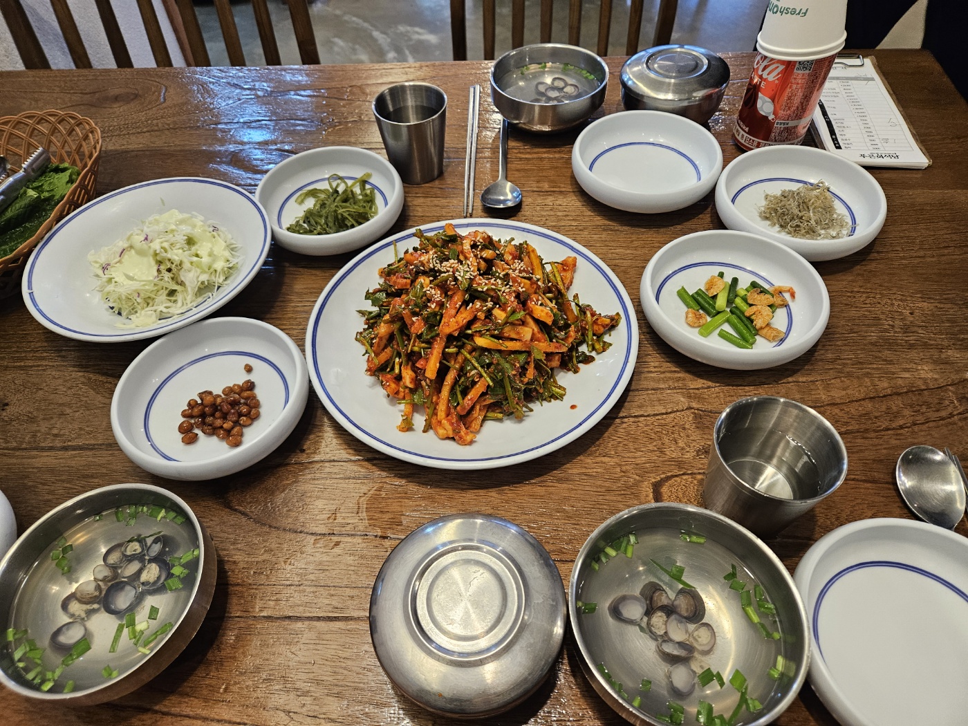 주문 후 바로 밑반찬과 제첩국이 나오고