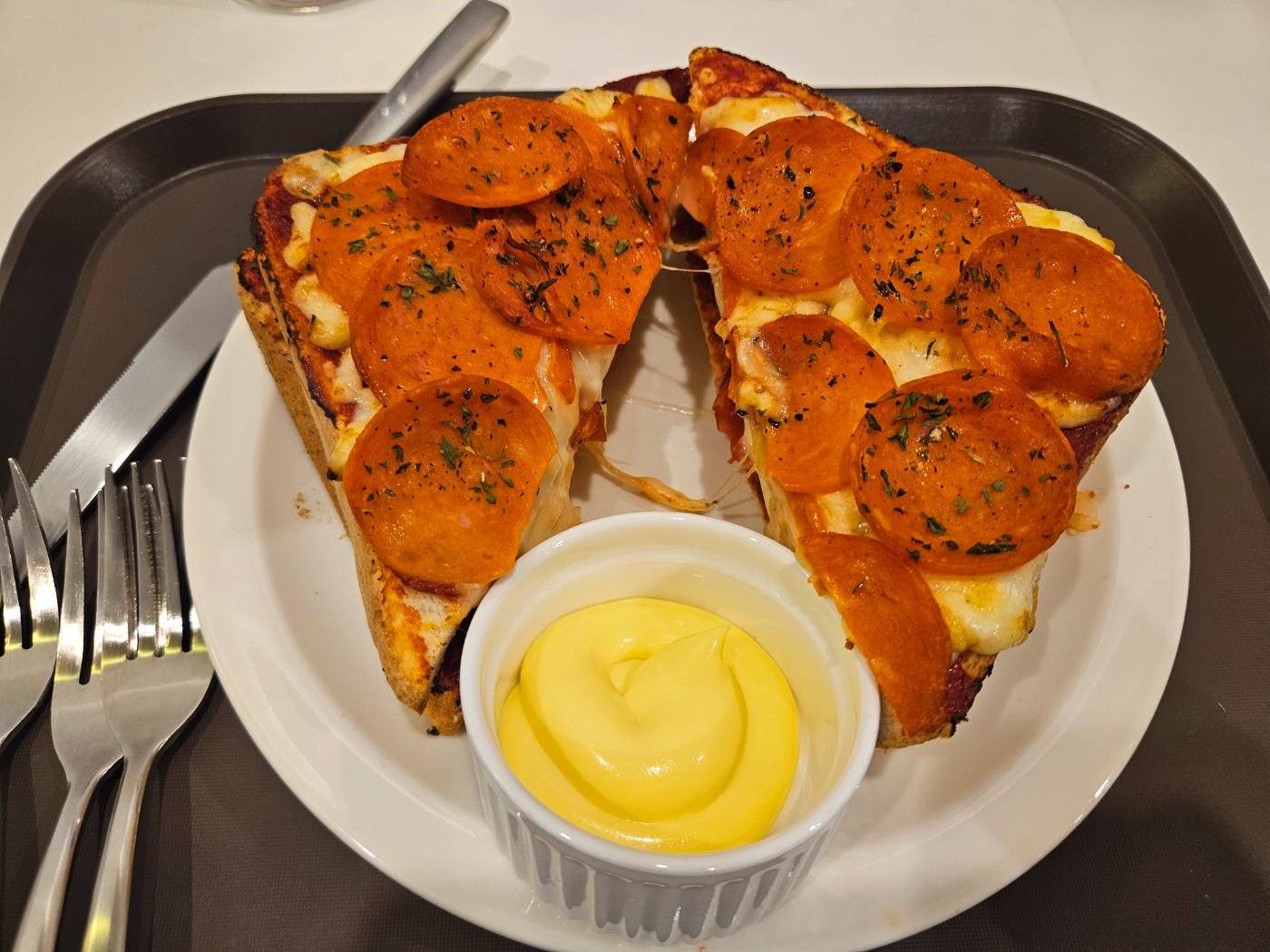 브런치메뉴 중 대표메뉴인 페퍼로니 토스트에요.