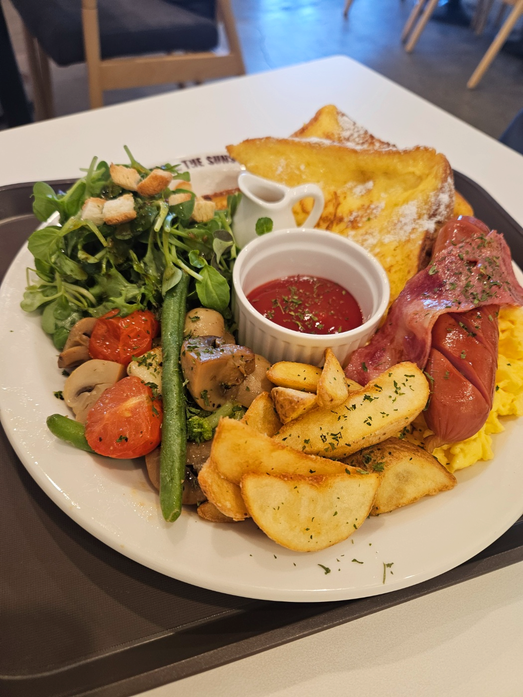 감자튀김, 스크럼블에그, 소세지와 베이컨
