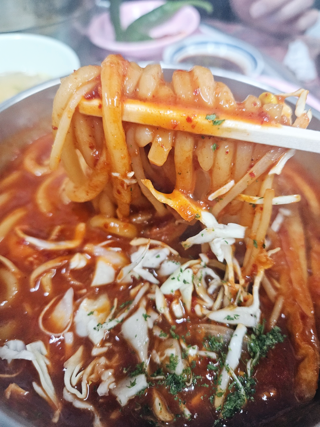 떡볶이에 떡 말고 우동이 들어있는 비쥬얼이에요.