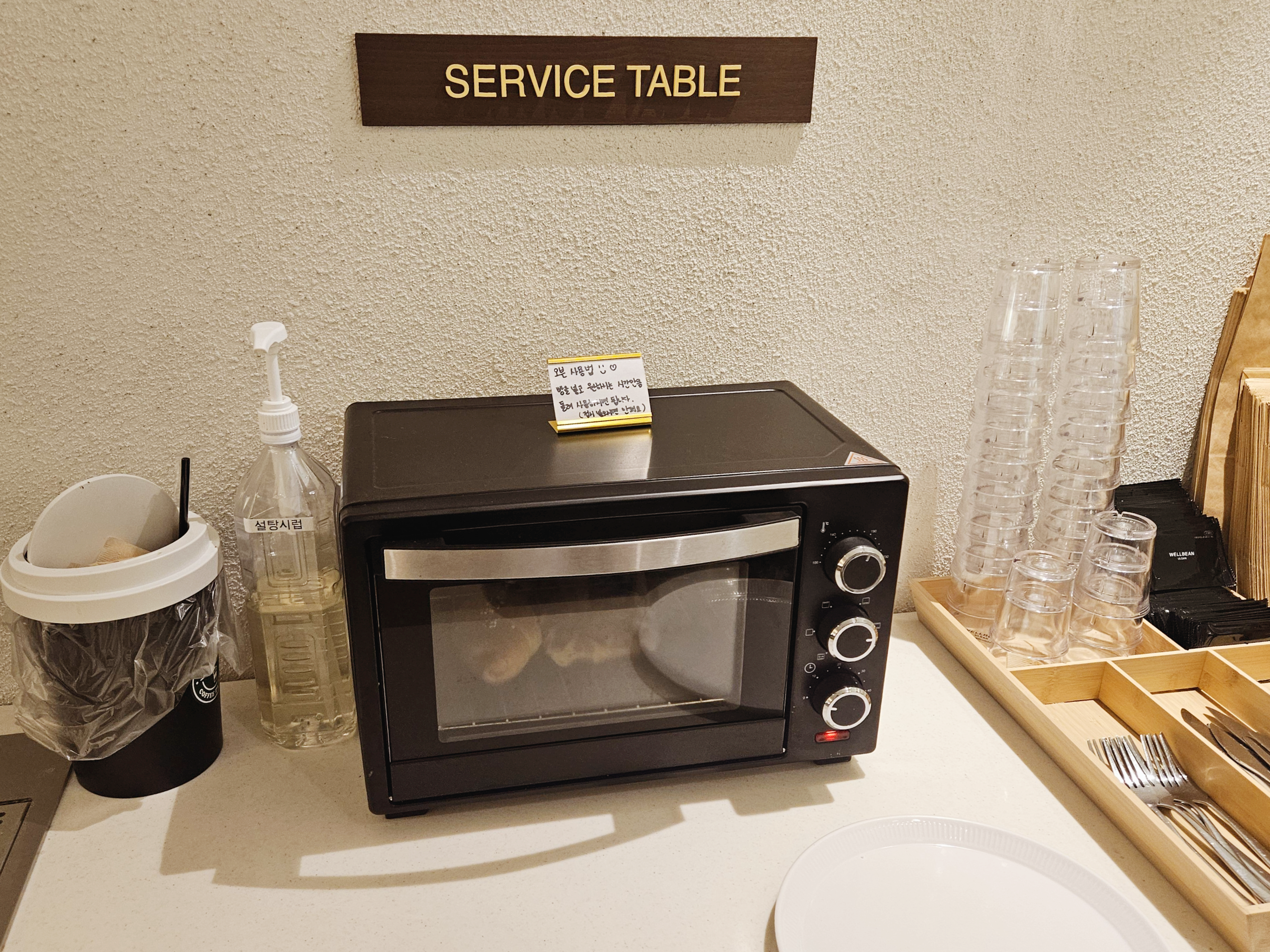 아무래도 빵이 좀 식어서 서비스 테이블에서