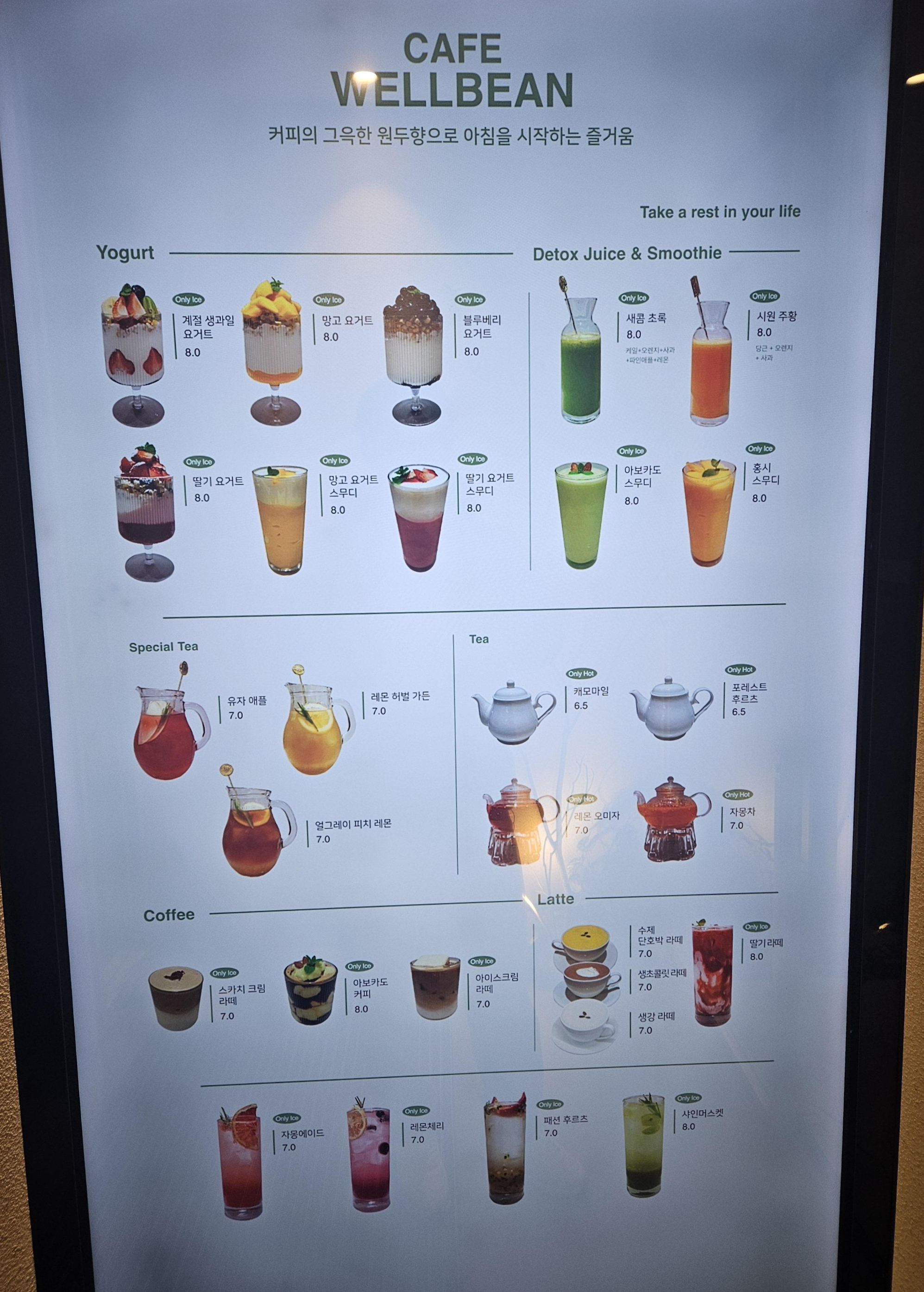 울산 남구 대형카페 웰빈의 메뉴에요.