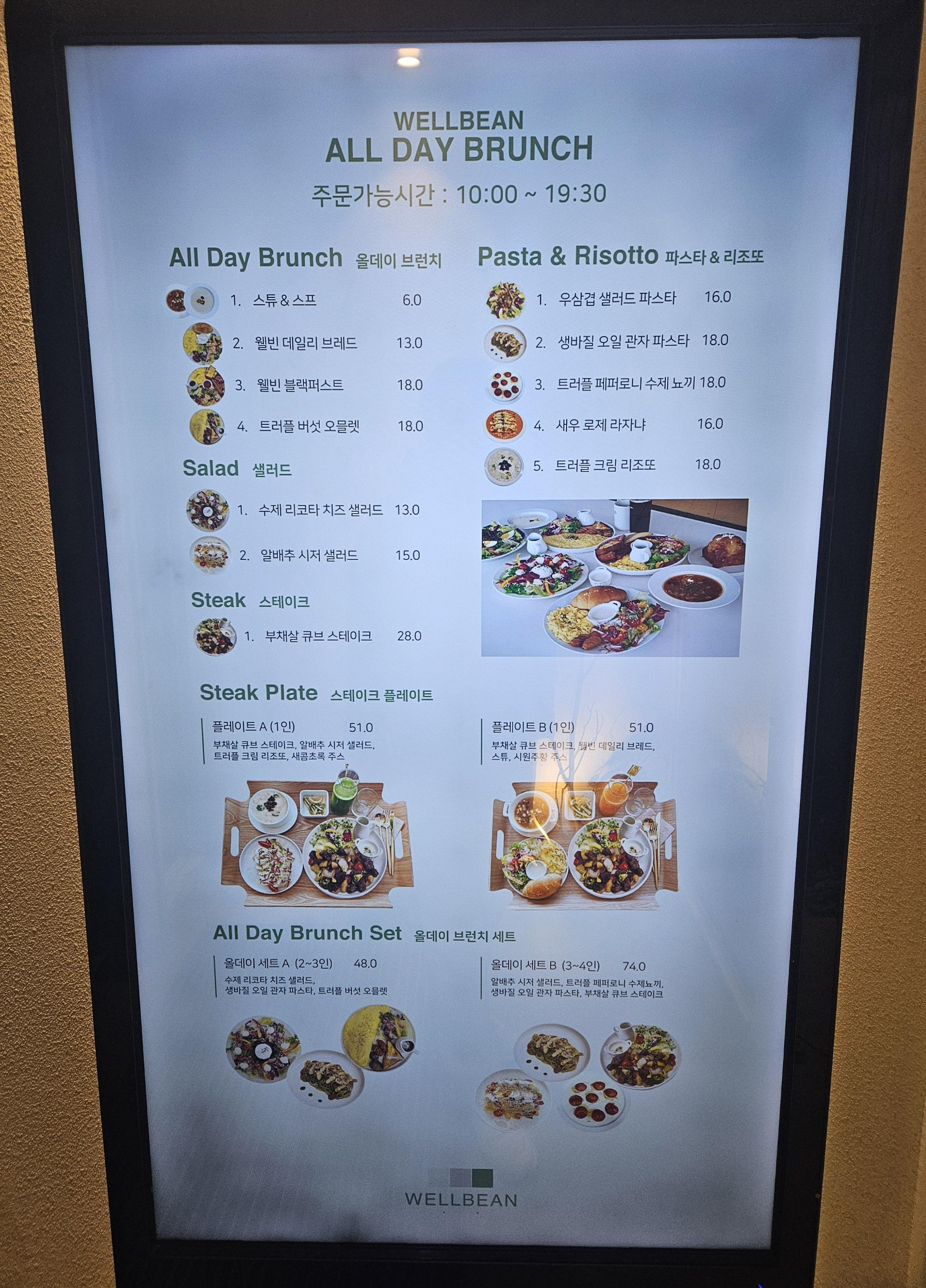 올데이 브런치 시간은 오전 10:00 - 19:30분까지이며