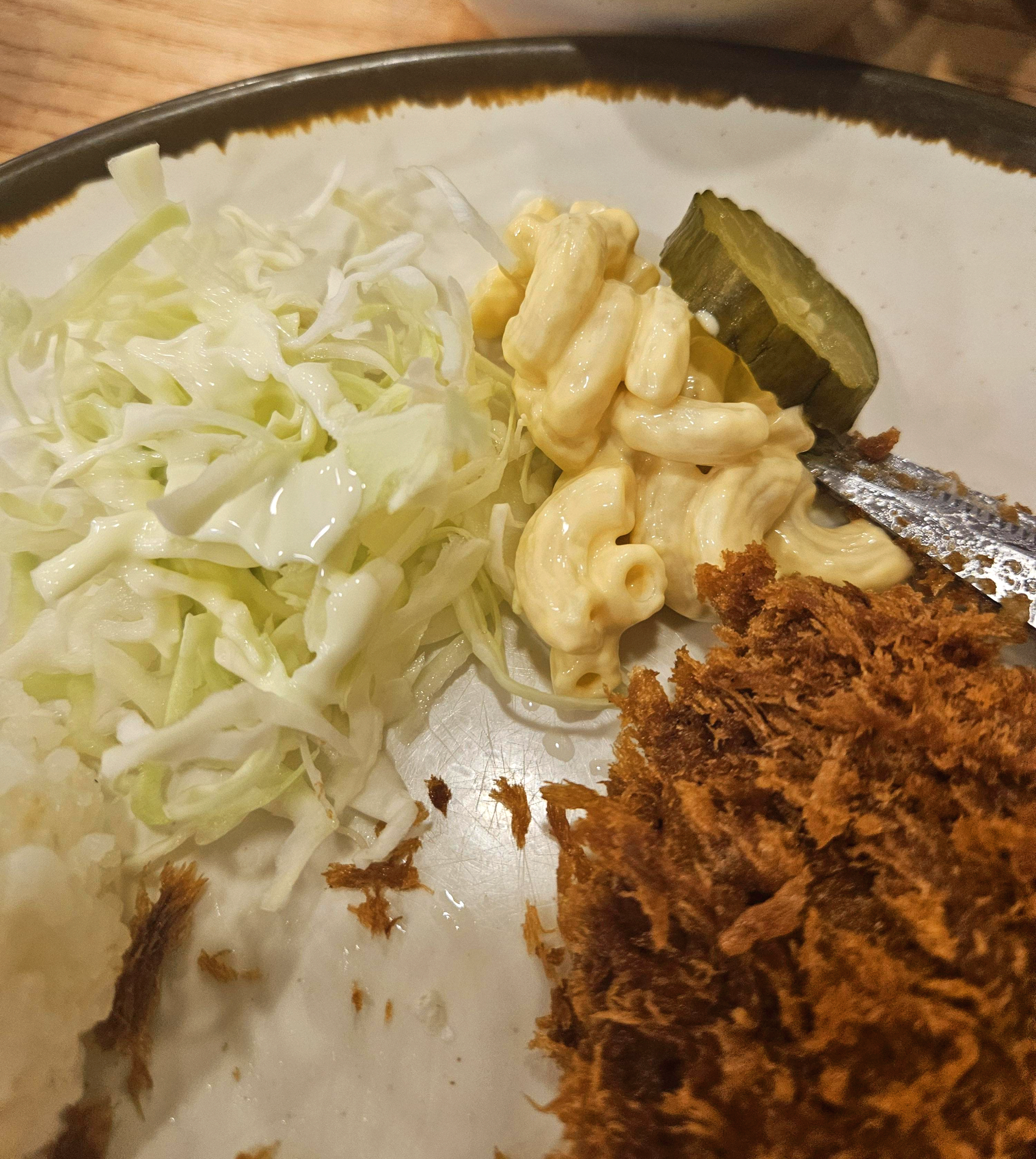 밥, 그리고 양배추, 마카로니 피클 이렇게