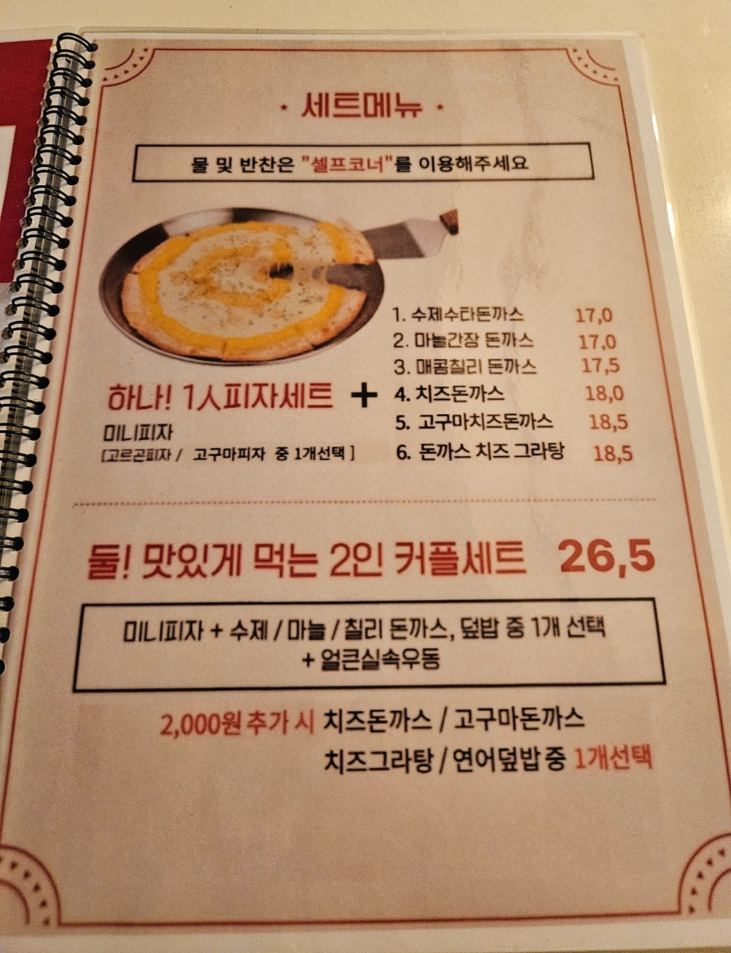저희는 치즈돈까스, 안심까스, 콩나물어묵우동