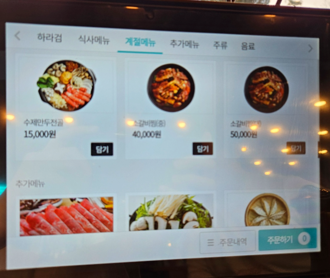 주문한 메뉴가 차례대로 하나씩 나왔어요.