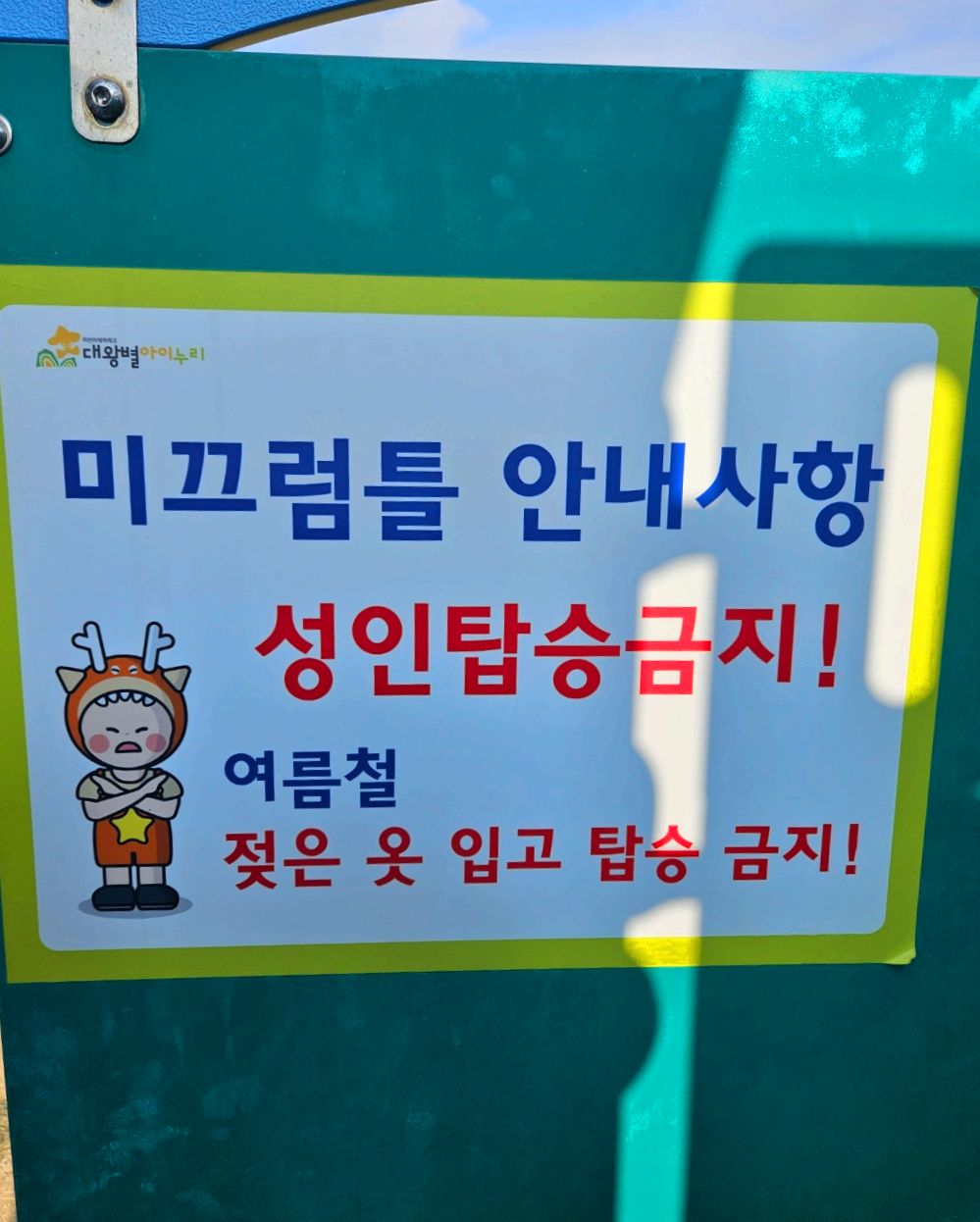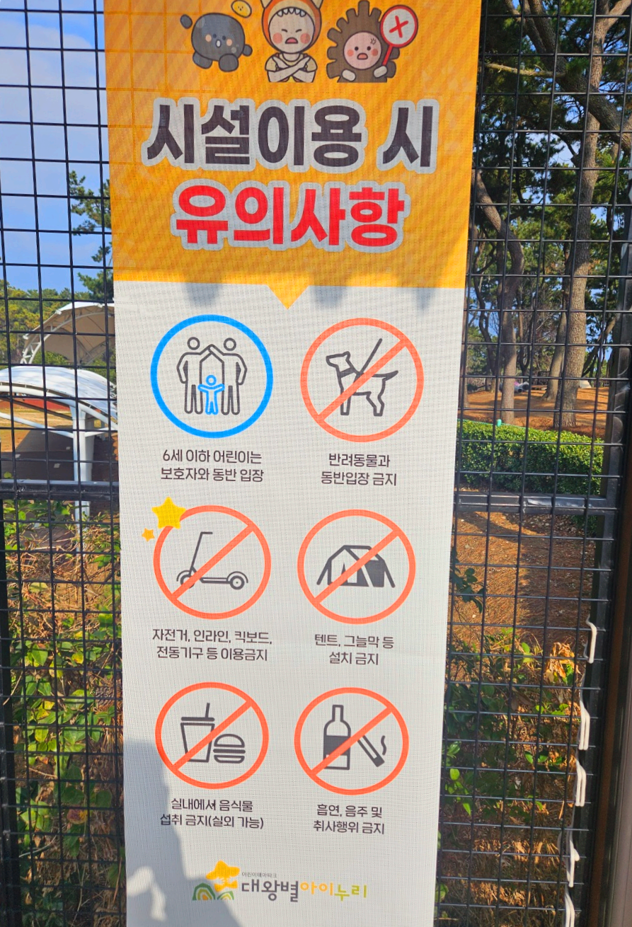 대왕별아이누리 테마파크의 유의사항이에요.
