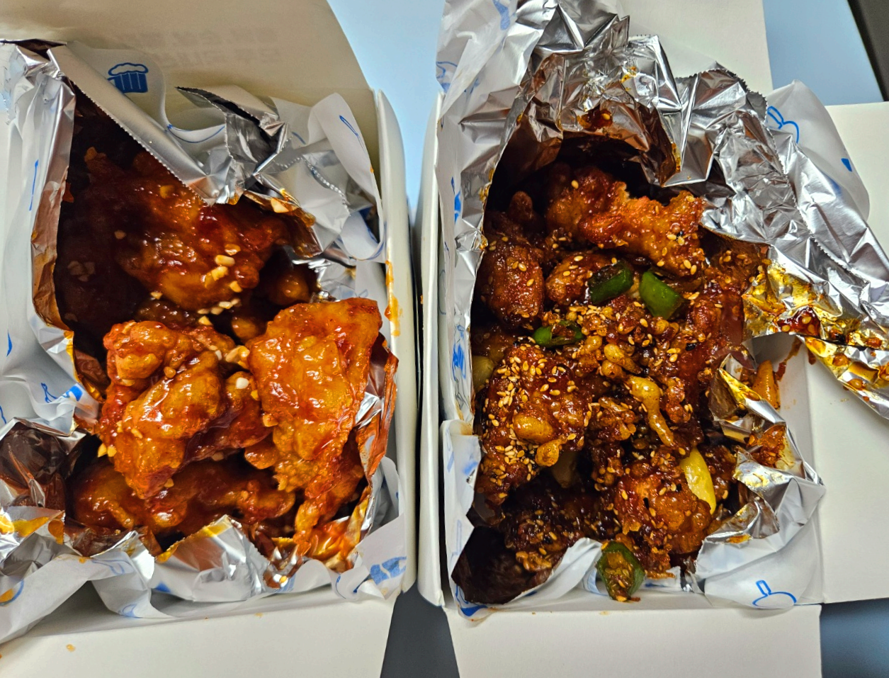 왼쪽이 삼덕통닭의 순살 양념치킨이고