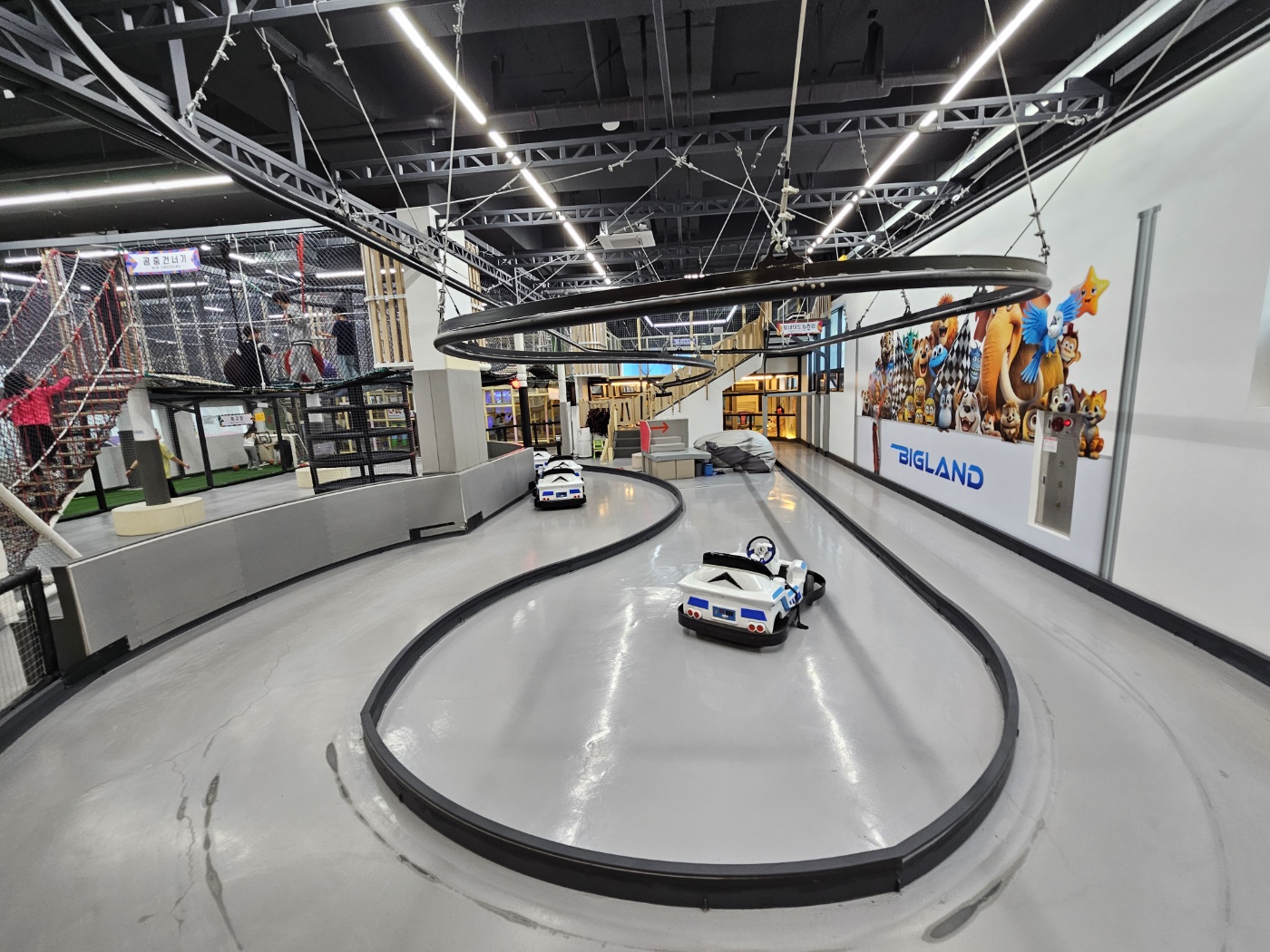 위에 있는 줄은 짚라인인데 레이싱카와