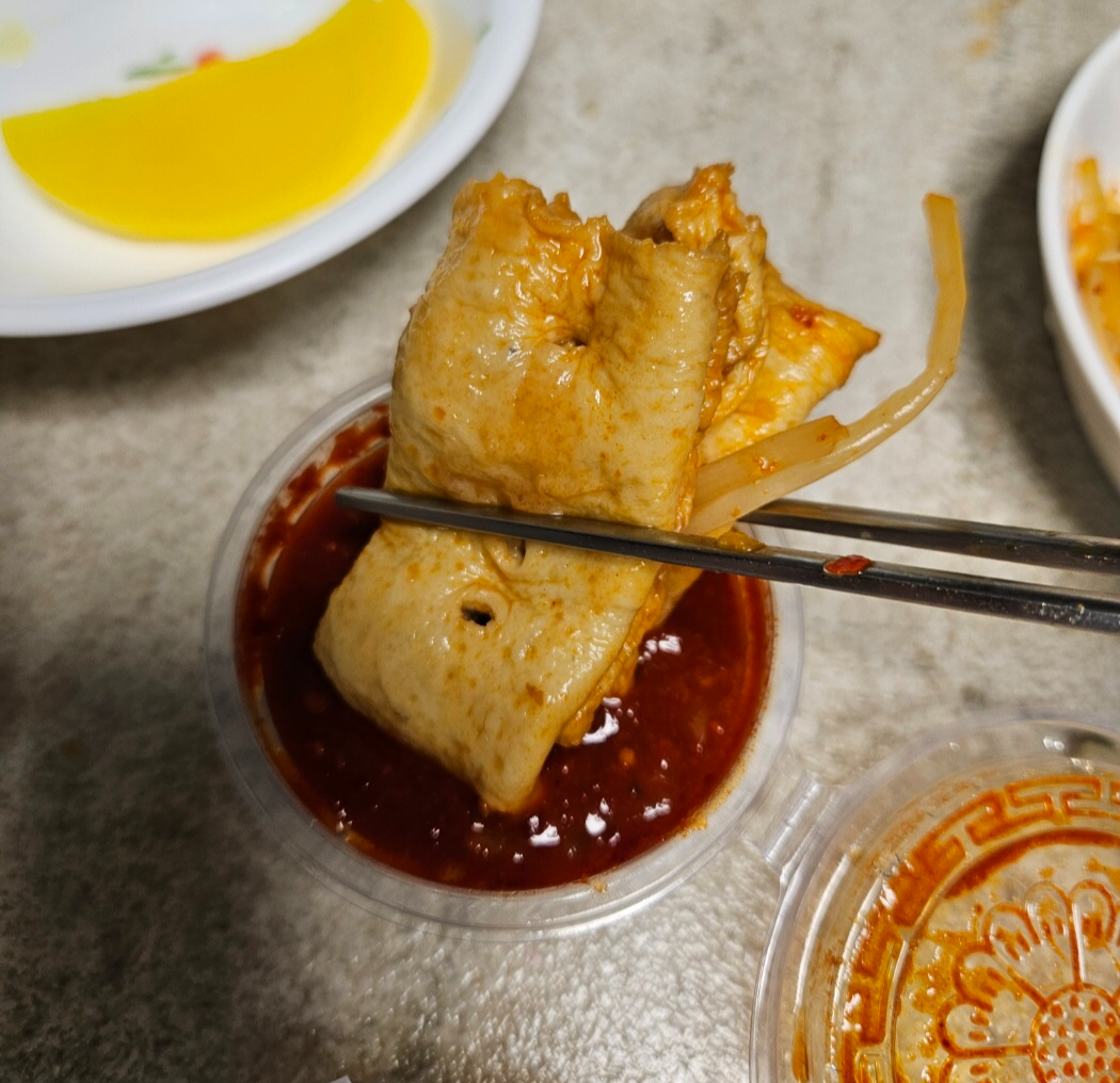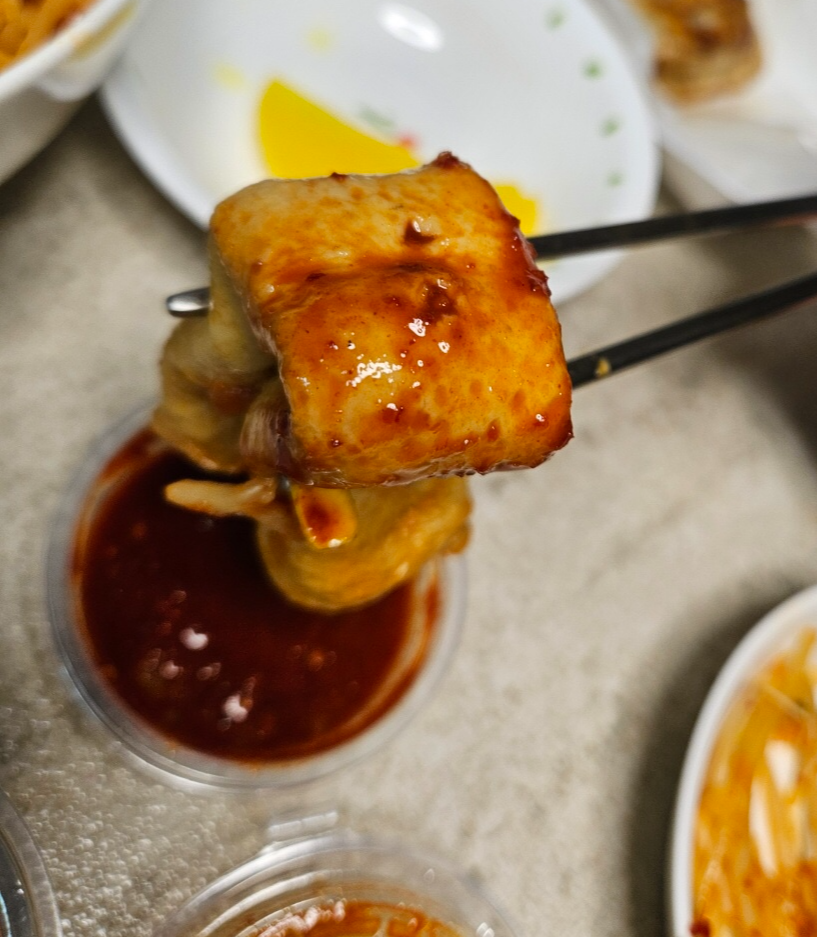 어묵을 찍어 먹으니 느끼하지도 않고 너무 맛있었어요.