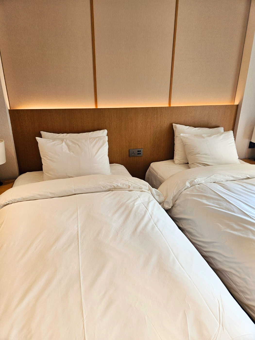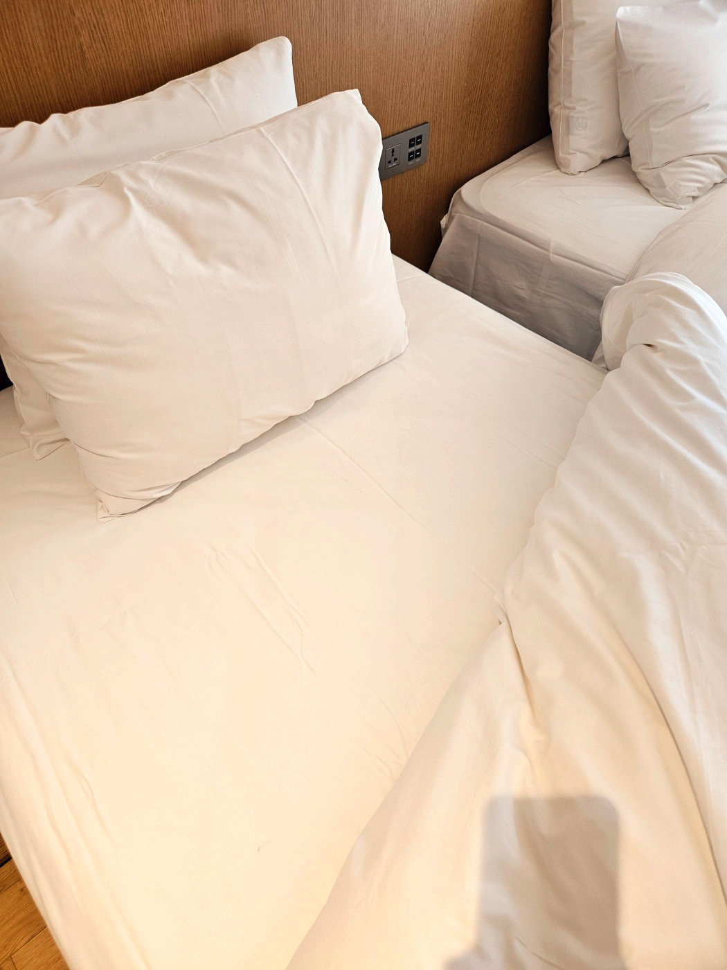 싱글 침대 두개를 붙여서 함께 잤어요. ㅎㅎ